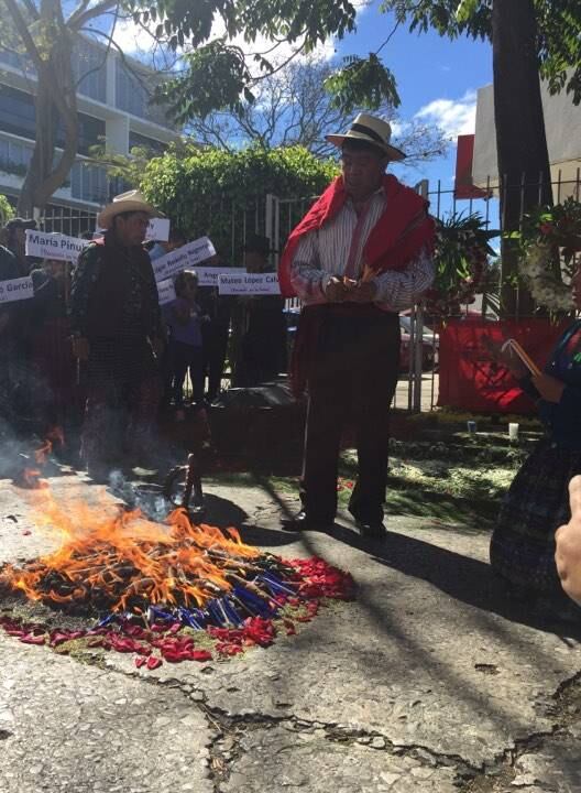 En los actos conmemorativos se realizó una ceremonia maya con flores, velas y fuego, mientras un grupo de activistas cargó un ataúd para recordar a las víctimas.