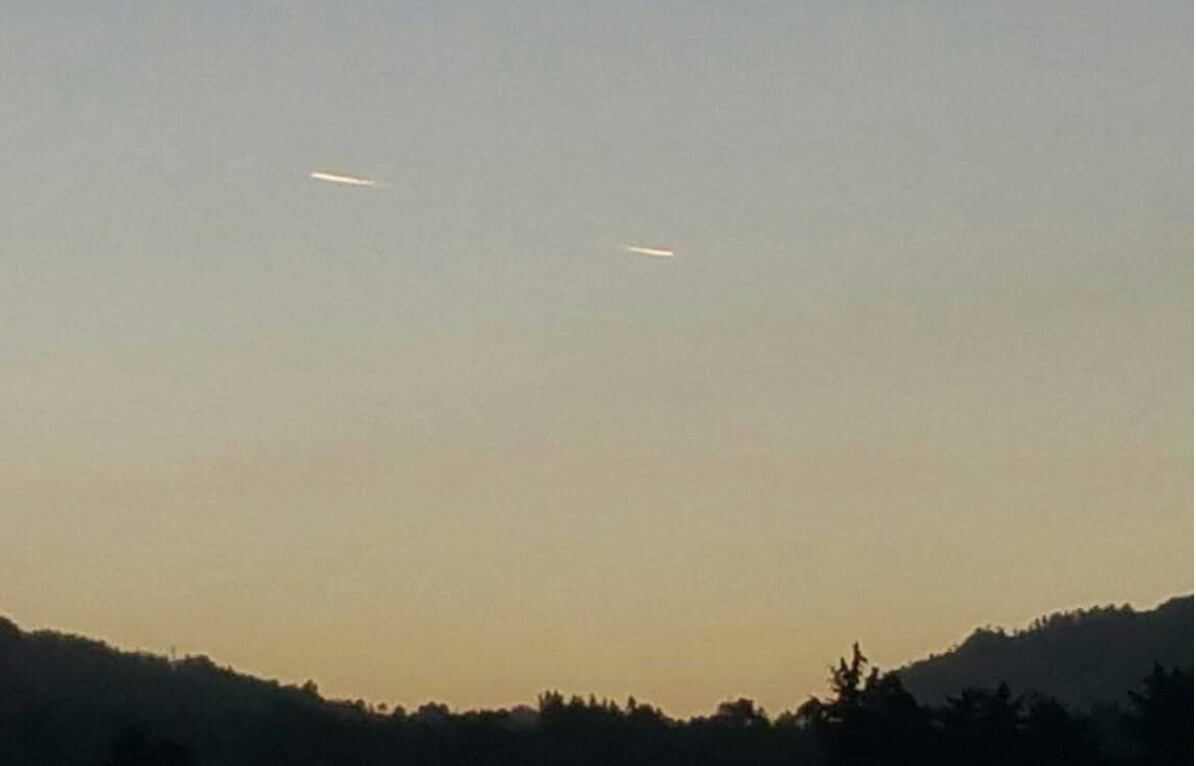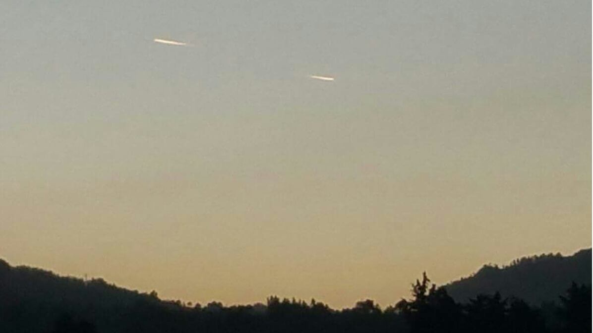 "Se trató de aviones con diferente altitud dejando su estela de vapor de agua. La estela rojiza es por el ángulo de visión con respecto a la luz del sol en el ocaso de la tarde.