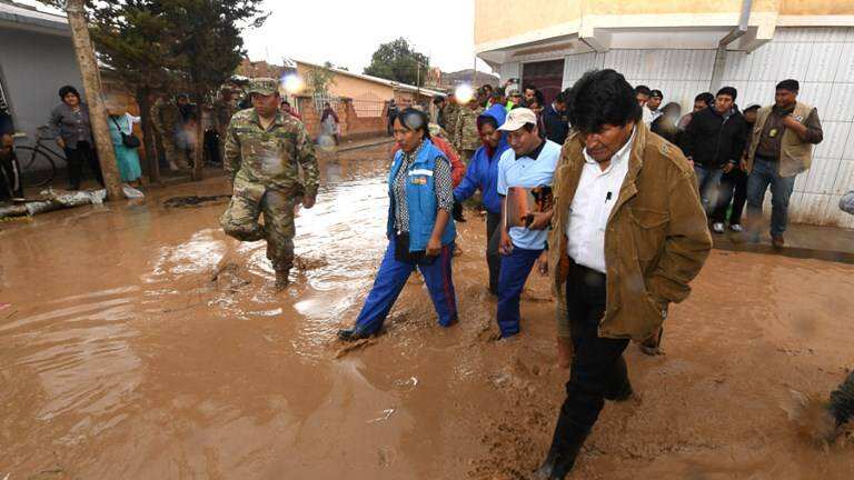 “El gabinete ha decidido declarar estado de emergencia para atender a las familias afectadas por inundaciones y mazamorras” (aludes de barro), anunció el presidente Evo Morales en una declaración en la Casa de Gobierno.