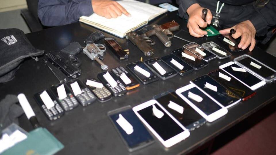 Al momento de interceptarlos, los pasajeros se bajaron de la camioneta y los otros tres delincuentes se dieron a la fuga, pero se logró la captura de Jonathan Eduardo Pérez Canté, de 26 años, quien portaba una mochila en donde transportaba 21 teléfonos celulares y cuatro armas de fuego.