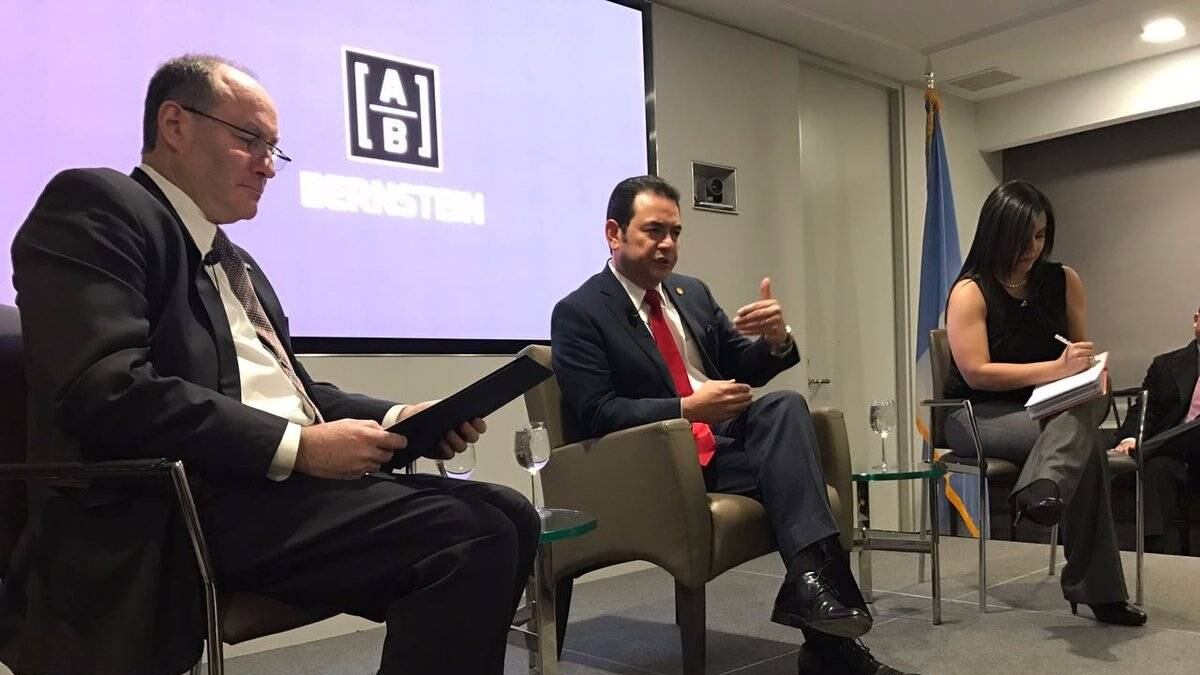 Jimmy Morales, se reunió hoy con dirigentes empresariales en Nueva York en el marco de su visita a Estados Unidos.