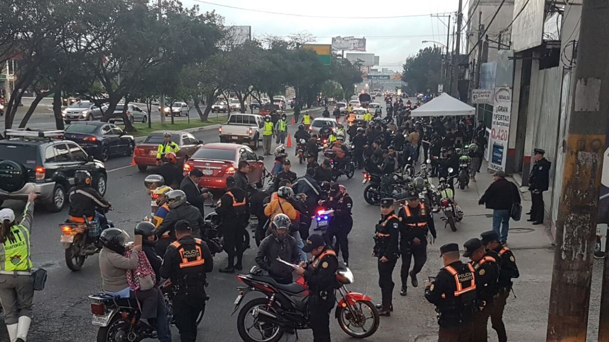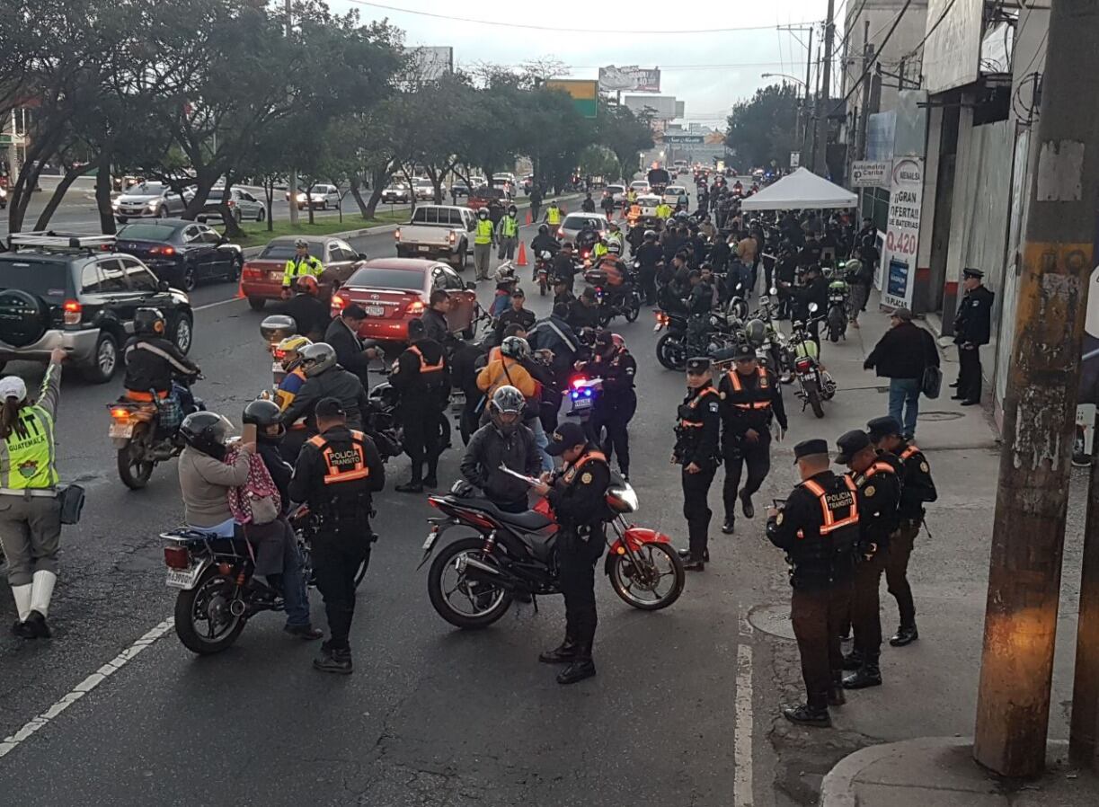 Desde tempranas horas, agentes de la PNC y de la PMT colocaron conos entre los carriles para disminuir la fluidez vehicular desde la 12 hasta la 9a. avenidas, de la calzada Roosevelt, en la zona 11 y así poder seleccionar a todos los motoristas, esto para revisiones exhaustivas.