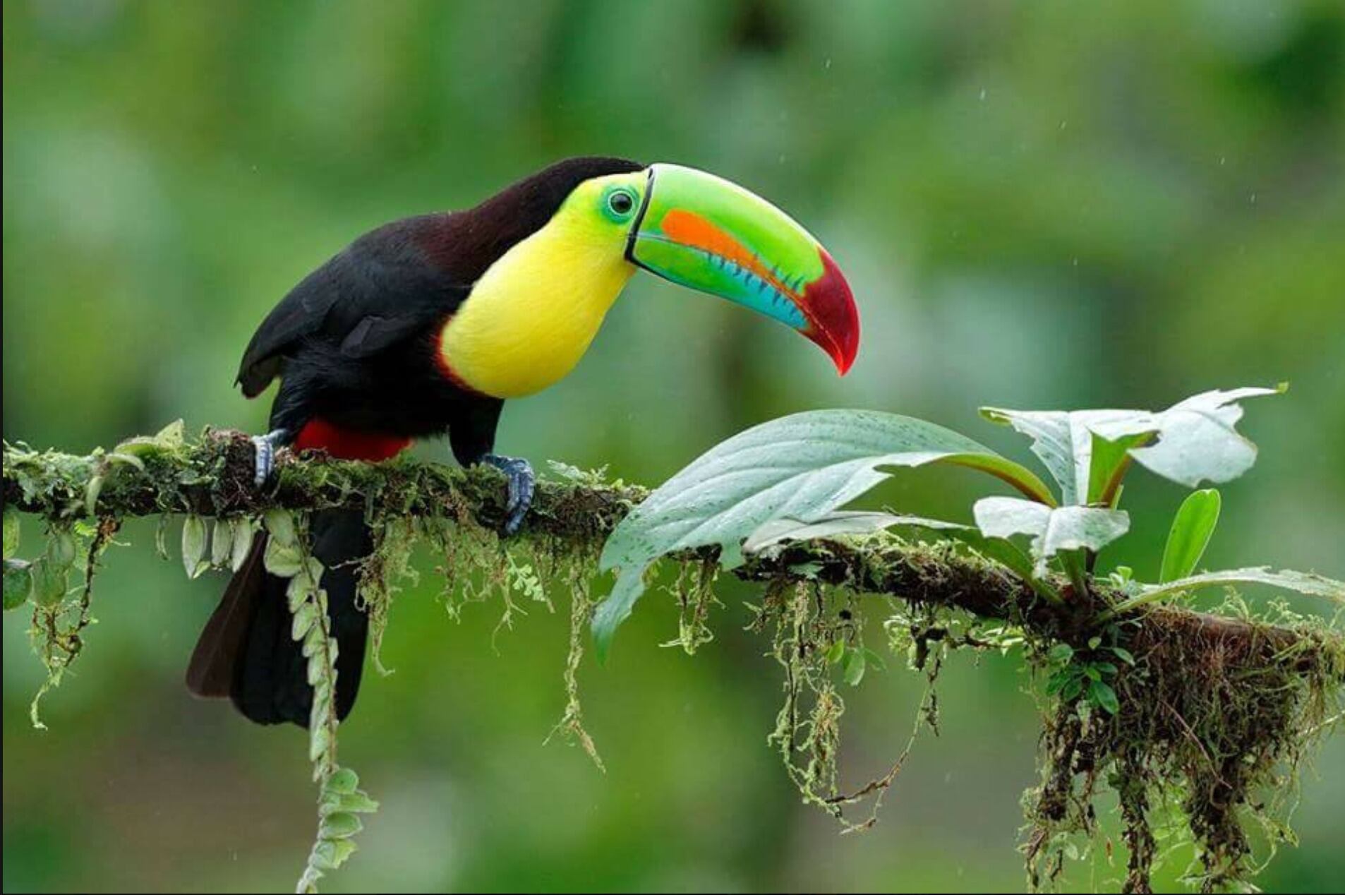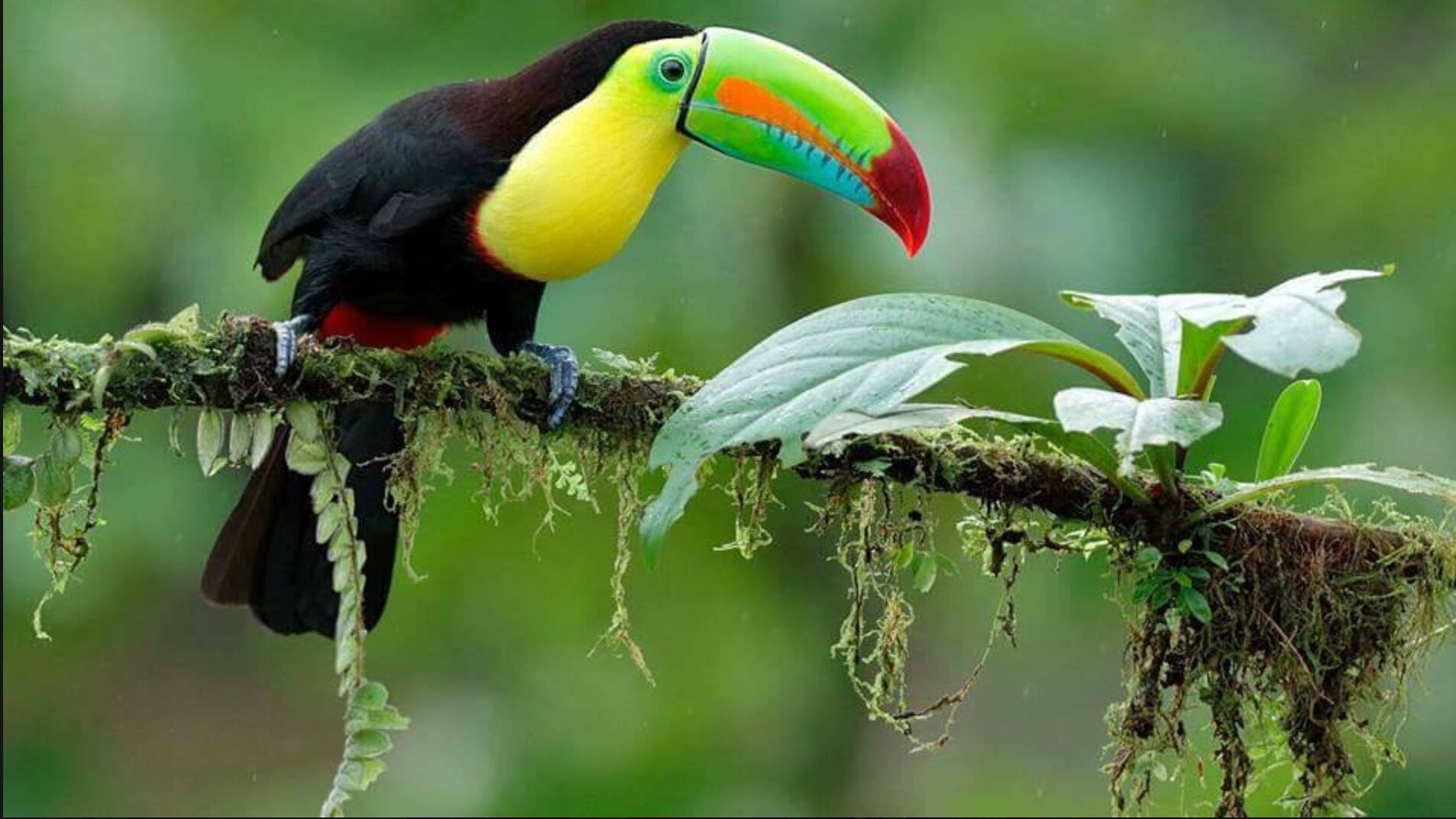 El tucán es un ave de plumas y pico de colores muy llamativos. Llegan a medir hasta 65 centímetros y pesan de 130 hasta 680 gramos.