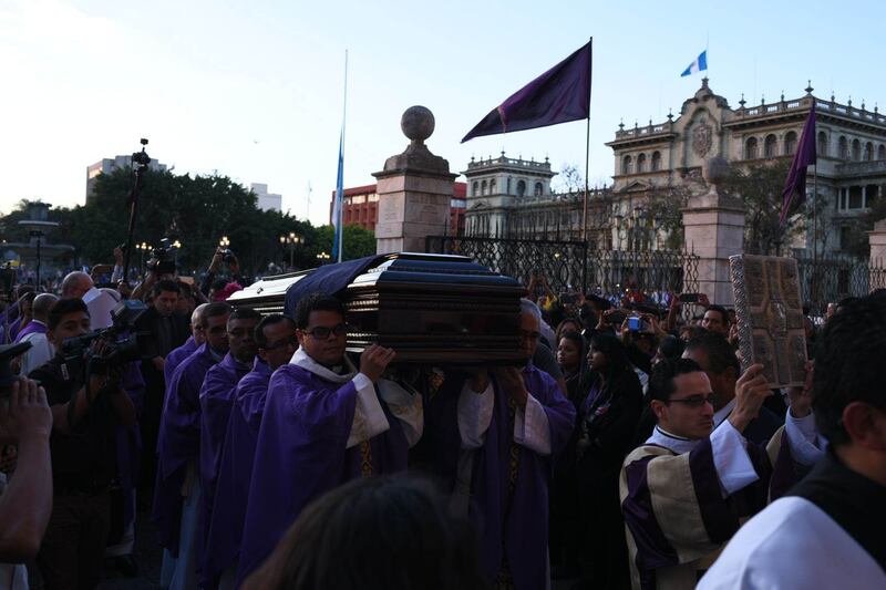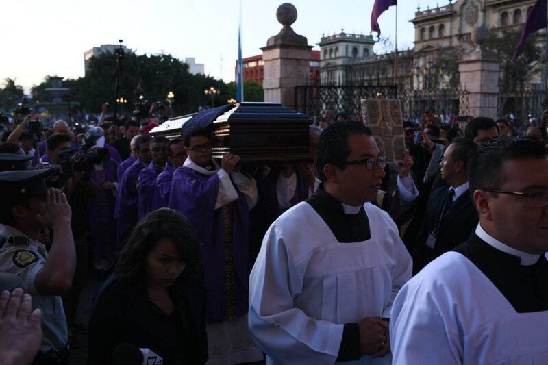 Ante las miradas de tristeza y desconsuelo de cientos de fieles católicos, se realizó un recorrido procesional con los restos del Arzobispo Metropolitano Oscar Julio Vian Morales del Templo Nuestra Señora de los Remedios, El Calvario, hacia la Catedral Metropolitana.