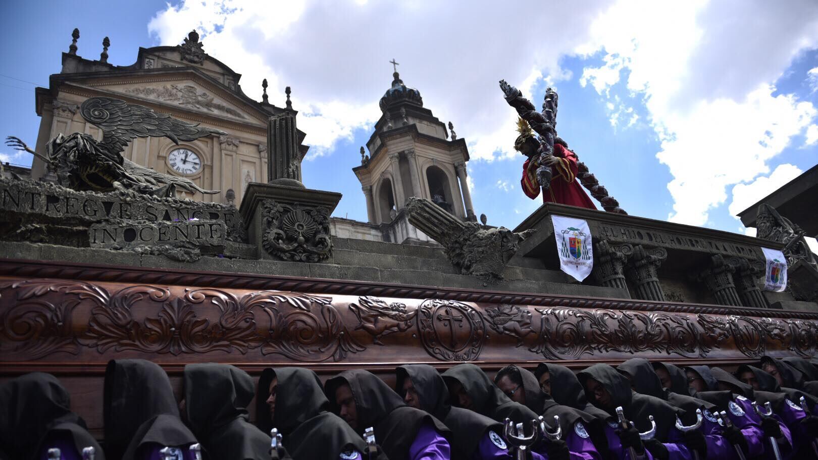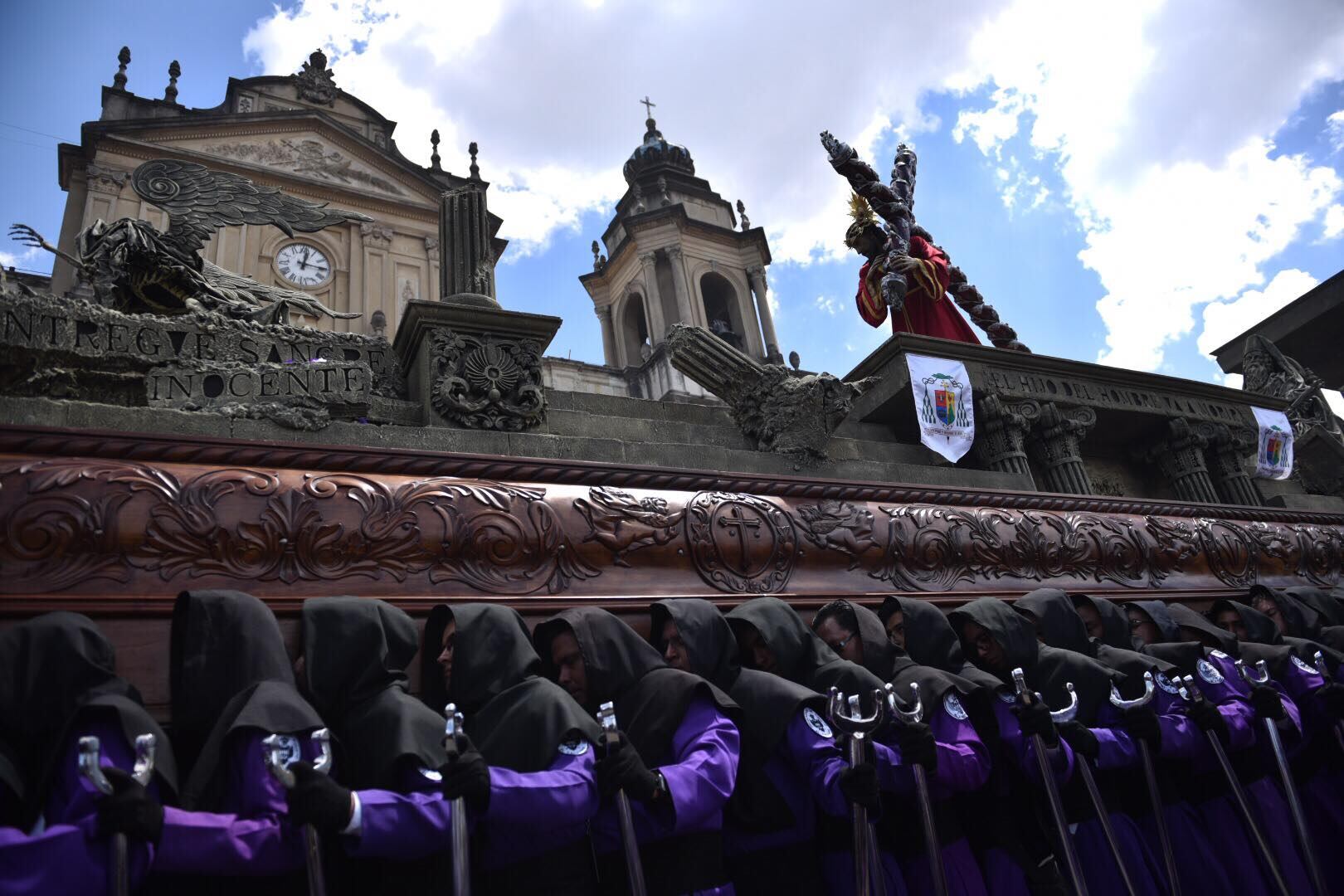 Previo a la salida del imponente mueble, decenas de personas se reunieron en plena 18 calle y 6a. avenida "A" para escuchar la Santa Misa y recibir la Comunión.