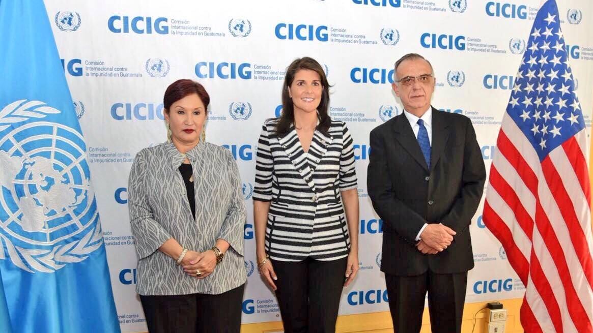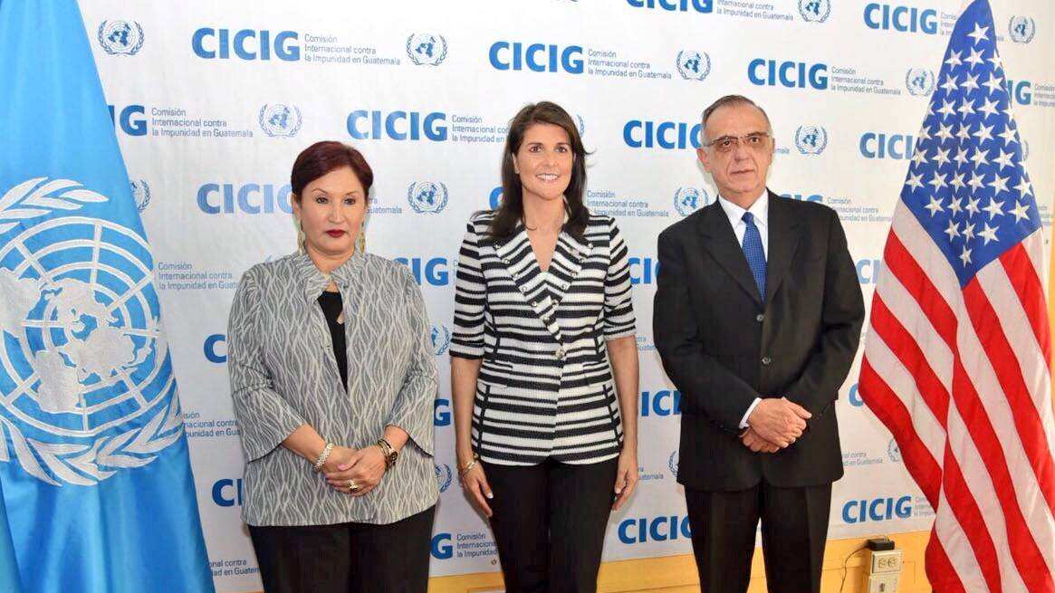 La embajadora de Estados Unidos ante la ONU, Nikki Haley, llegó a la sede de la CICIG, en la zona 14, y se reunió con el comisionado Iván Velásquez y la fiscal general del MP, Thelma Aldana.