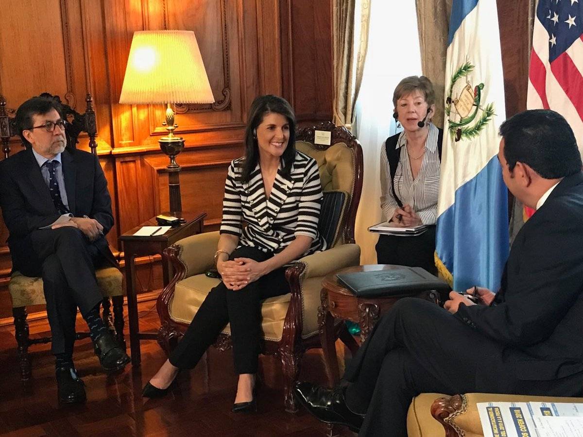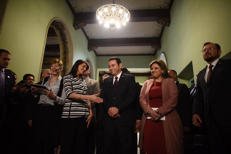 El presidente Jimmy Morales se reunió este miércoles con la embajadora estadounidense ante la Organización de Naciones Unidas (ONU), Nikki Haley, para abordar diversos temas, incluida la cooperación entre Estados Unidos y Guatemala.