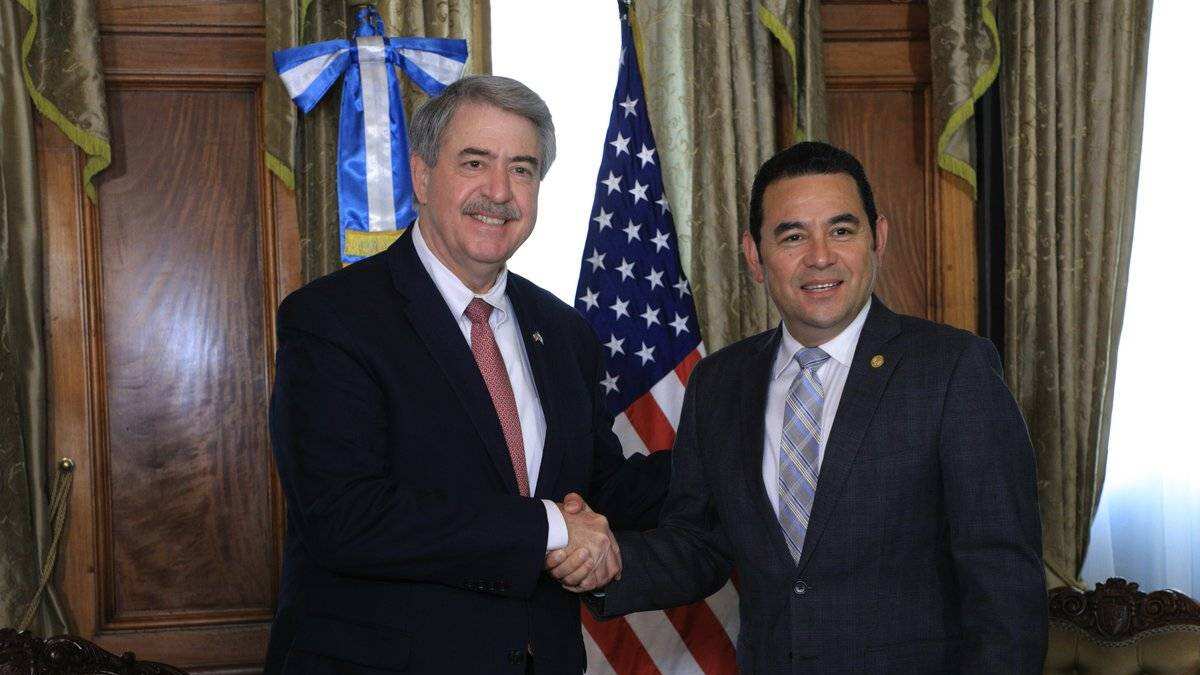 El presidente Jimmy Morales recibió en el Palacio Nacional de la Cultura al subsecretario de Comercio y Asuntos Agrícolas del Exterior del departamento de Agricultura de Estados Unidos, Ted McKinney.