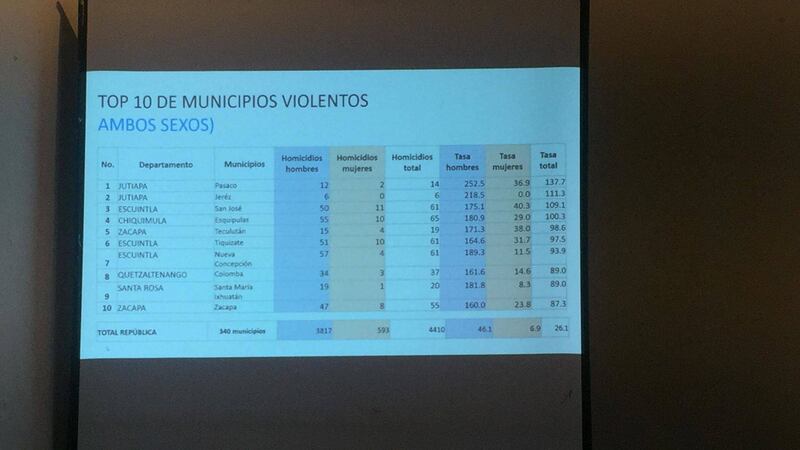 En el informe anual se explica que en 2017 tres cuartas partes de los homicidios de mujeres ocurrieron en seis departamentos: Guatemala, Escuintla, Chiquimula, Izabal, Petén y Zacapa.