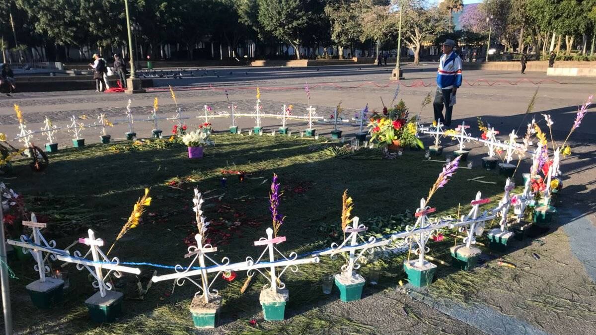 En la plaza de la Constitución permanece desde ayer Carmen Urías, madre de una de las niñas fallecidas durante el incendio.