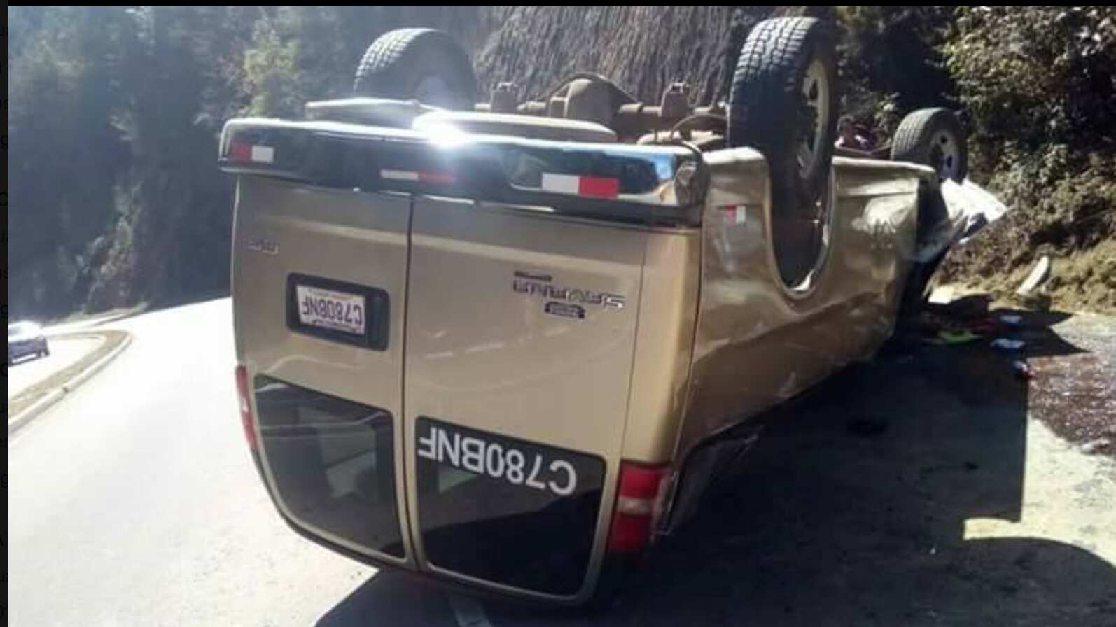 Un microbús volcó este sábado en el kilómetro 173 ruta Interamericana, jurisdicción de San Cristobal, Totonicapán. Dos hombres y una mujer de nacionalidad francesa resultaron heridos.