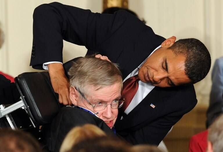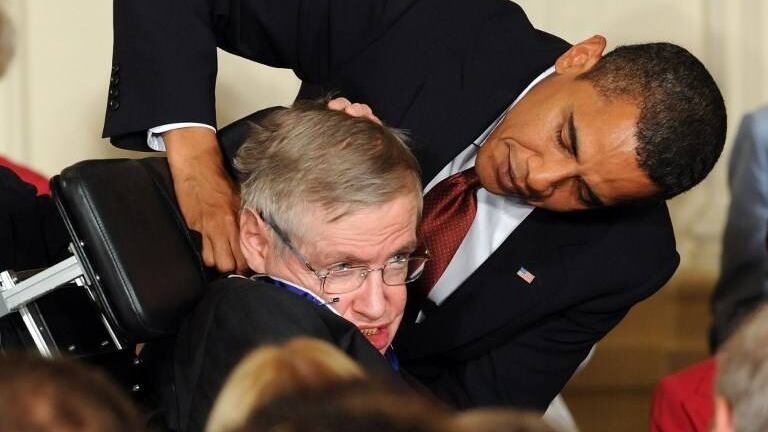 “Diagnosticado con una enfermedad rara y le dijeron que solo le quedaban unos años de vida, eligió vivir con un nuevo propósito”, dijo Obama en ese momento, aludiendo a la esclerosis lateral amiotrófica (ELA), condición que aquejó a Hawking desde los 21 años de edad.