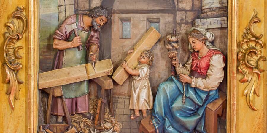 José de Nazaret, de oficio carpintero, según el Evangelio de Mateo, le enseñó esta profesión a su hijo, Jesús. Es considerado el Patrón de la Iglesia Universal.