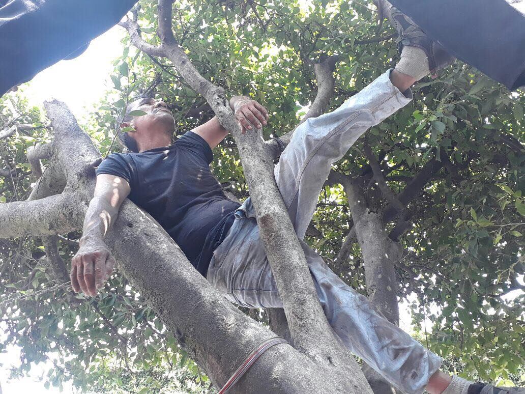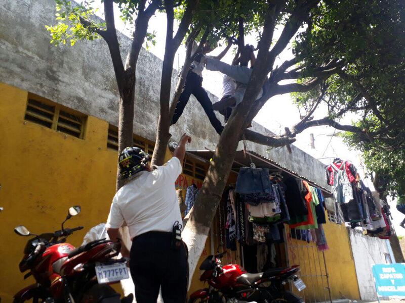 La visita del cuadro colonial, actual campeón de la Liga Nacional de Futbol le representó a un aficionado del Deportivo Siquinalá este domingo después de haberse quedado trabado en un árbol.