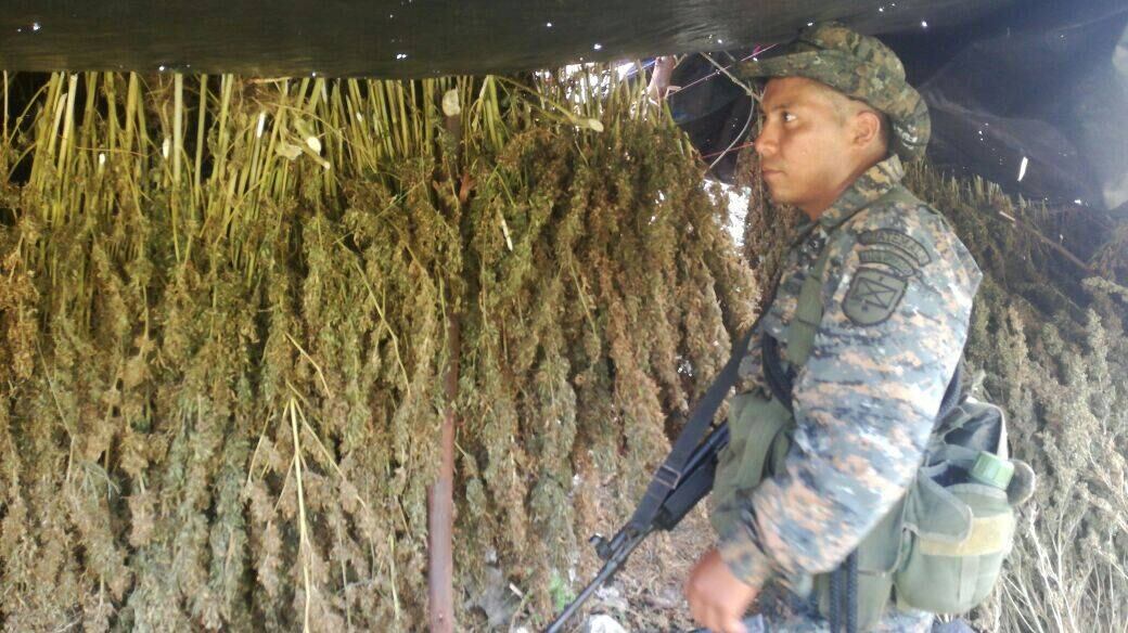 Un patrullaje rutinario, que realizó un grupo de soldados, finalizó con la incautación de marihuana. Parte de la plantación ya había sido cortada y almacenada. Esta a la sombra secándose para el consumo.