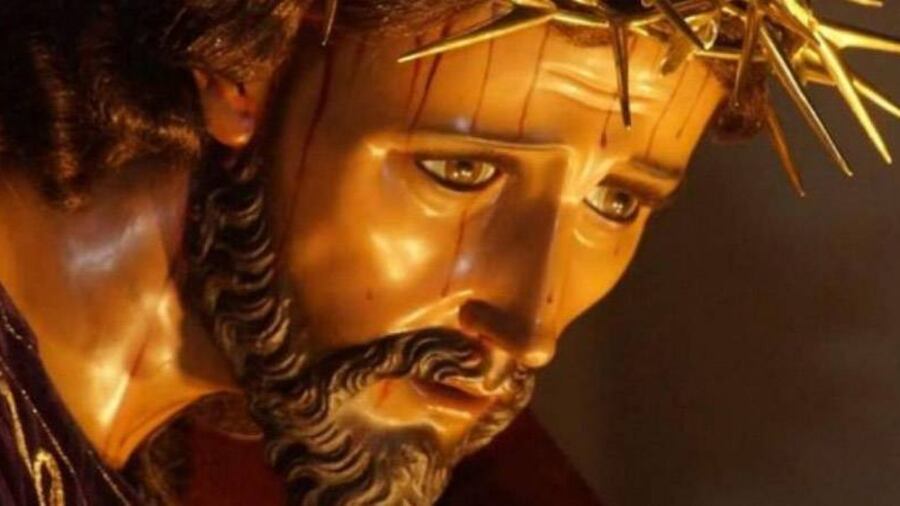 A continuación, sobre una peana con rematas de estaticias y custodiada por cuatro cirios, se aprecia a la imagen del nazareno del Consuelo, quien se presenta como nuestro sumo sacerdote que preside en el Altar de la Cruz.