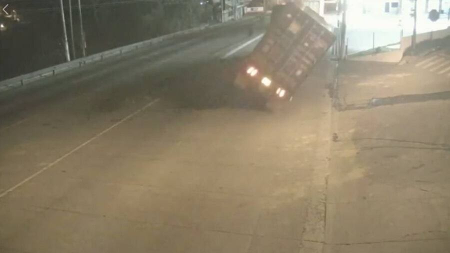 El percance ocurre debido a la excesiva velocidad en la que se conduce el piloto del camión, cosa que queda evidenciada en el video.
