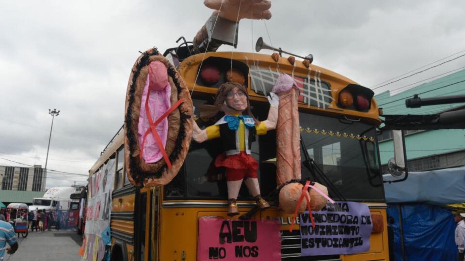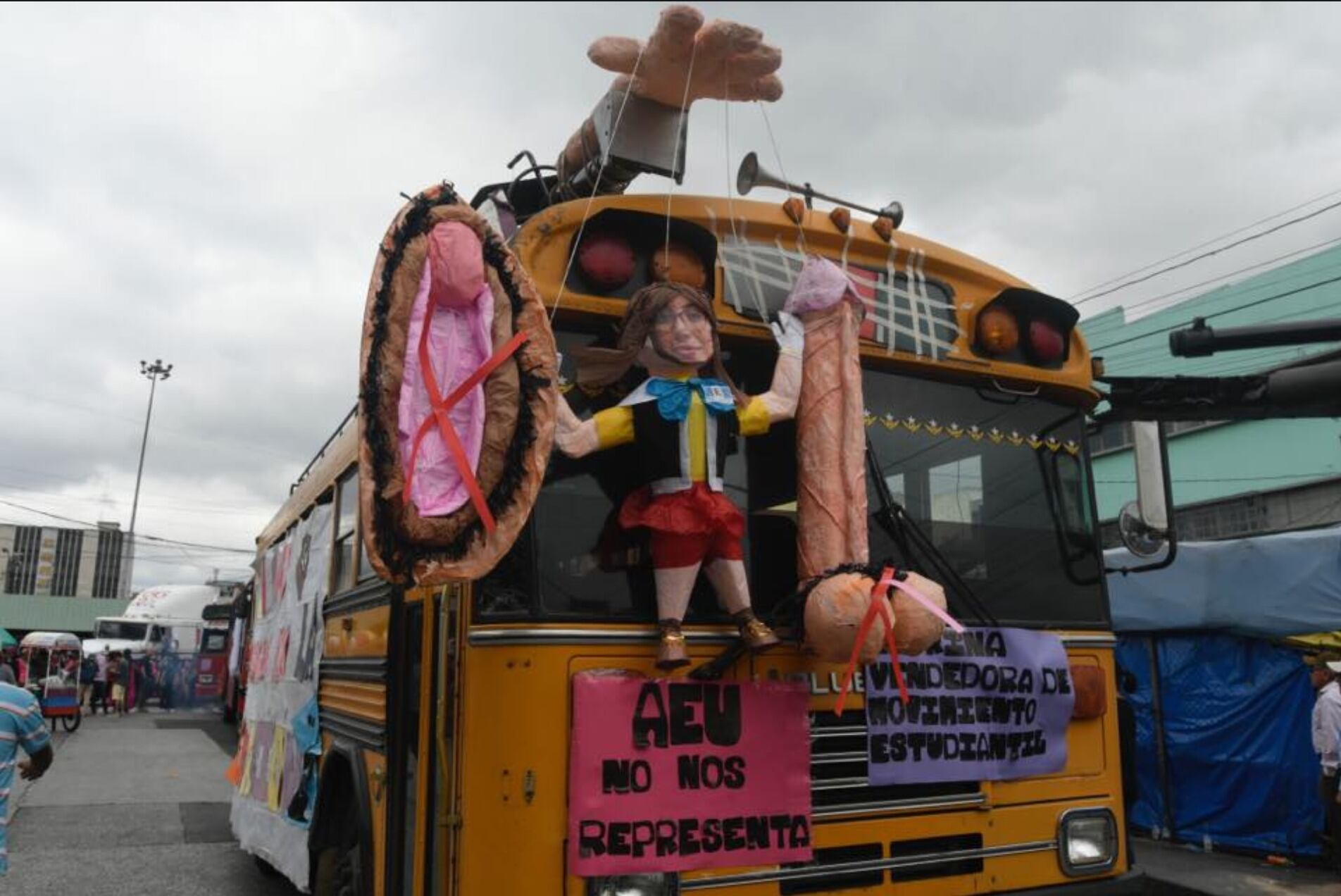 "Este bello país no es un circo", "AEU no nos representa", "Estado que mata a su pueblo de desnutrición, desempleo, inseguridad, miseria, no es Estado", son los mensajes de algunas carrozas.