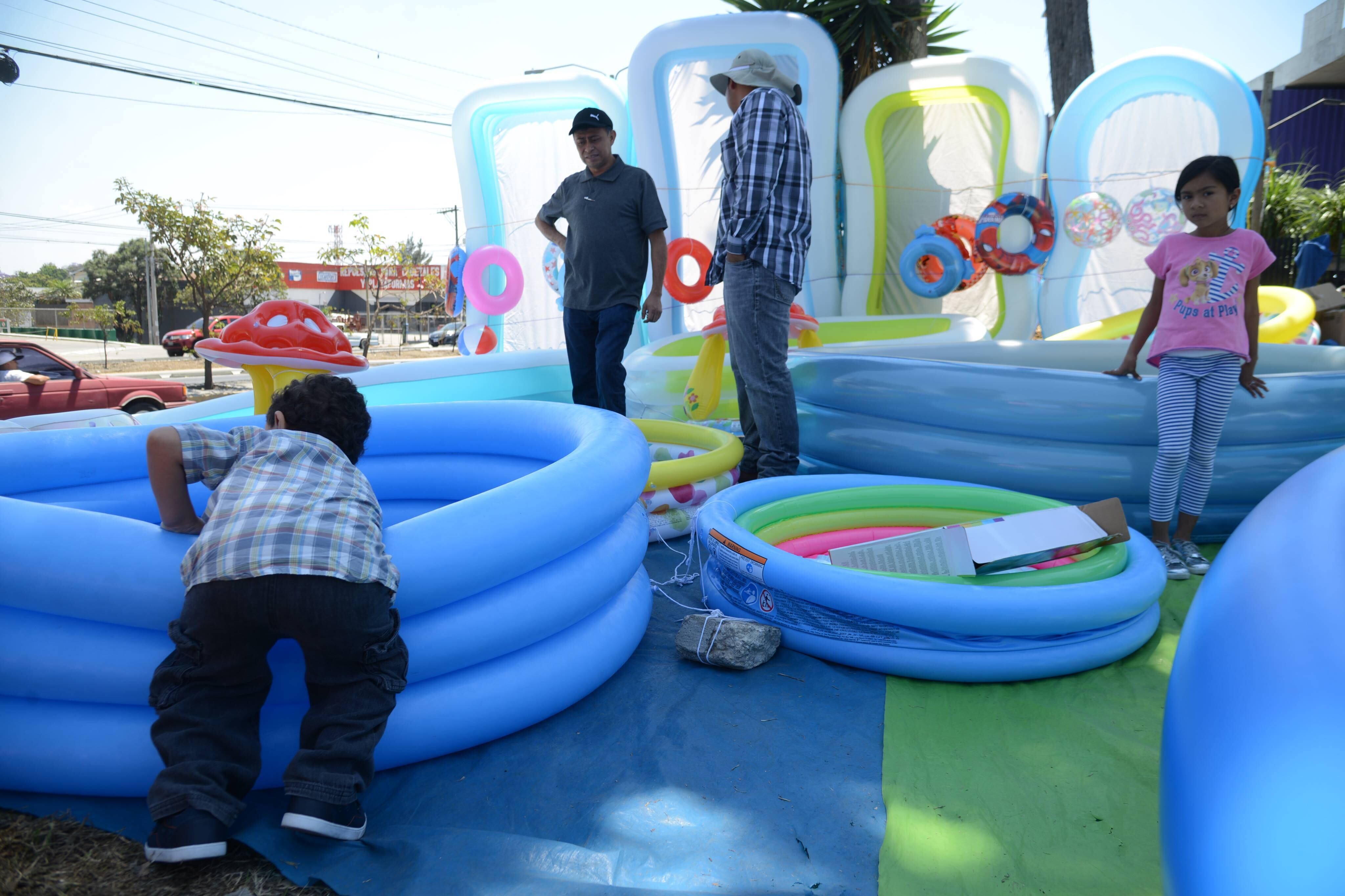Los precios varían según el tamaño. Hay algunos de Q75 y otros de Q450, que son piscinas inflables.