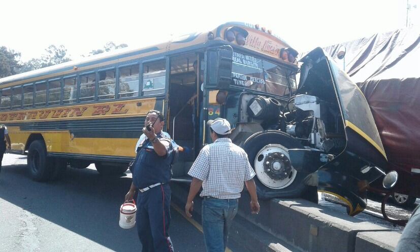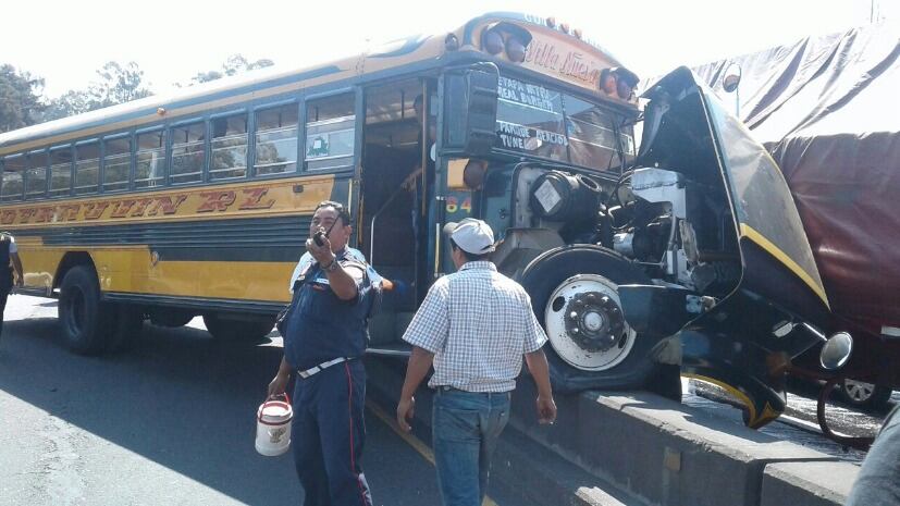 Al menos dos personas resultaron heridas este lunes luego de que un bus extraurbano colisionara contra un tráiler en el kilómetro 20 de la ruta al Pacífico.