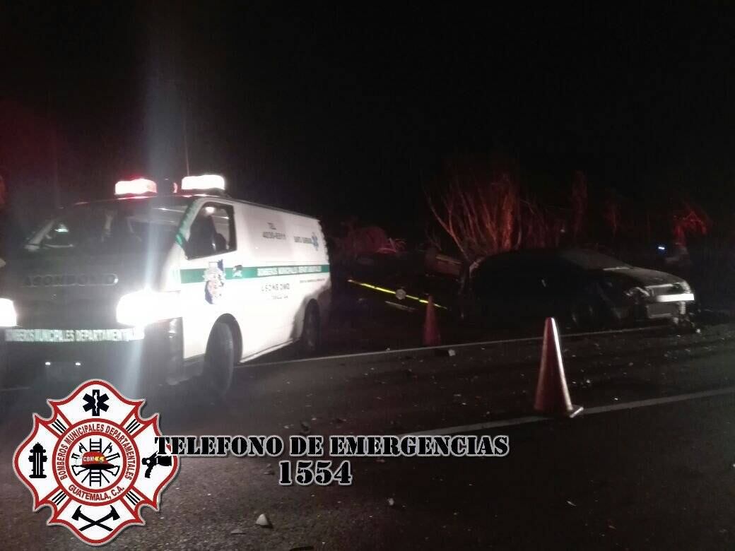 En horas de la madrugada de este Viernes Santo se registró un hecho de tránsito en el kilómetro 123 de la ruta al Pacífico, el cual dejó como resultado un agente de la Policía Nacional Civil (PNC) fallecido y tres personas particulares heridas.