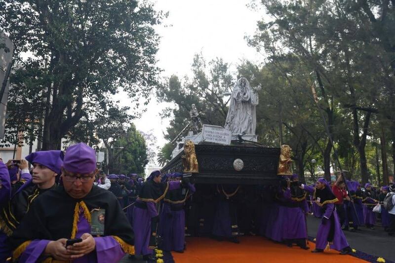 Posteriormente, la procesión pasó frente a la Parroquia San Sebastián y se dirigió al Paseo de la Sexta. Se tiene programado que a las 12:00 horas realice su recorrido frente a Catedral Metropolitana.