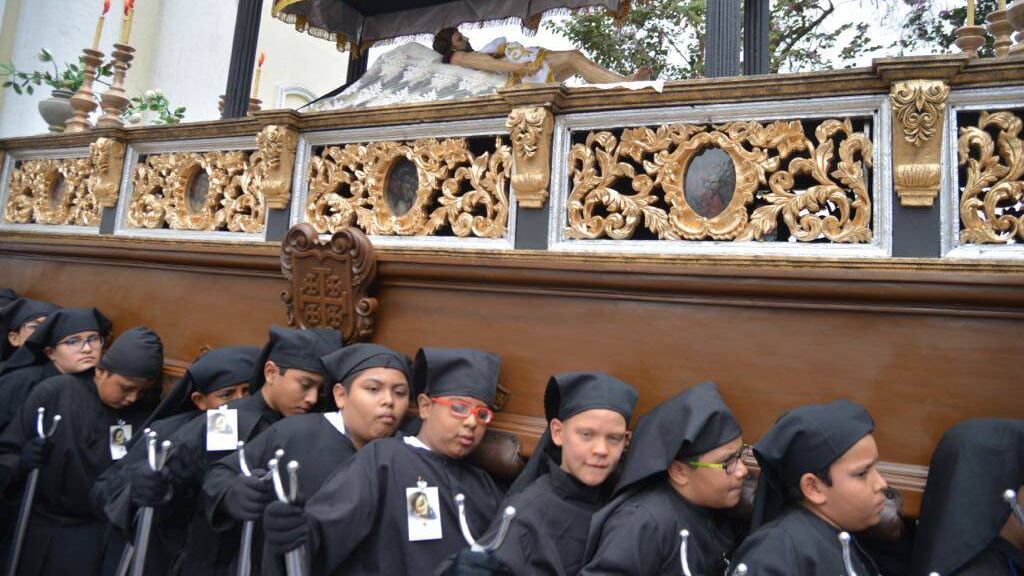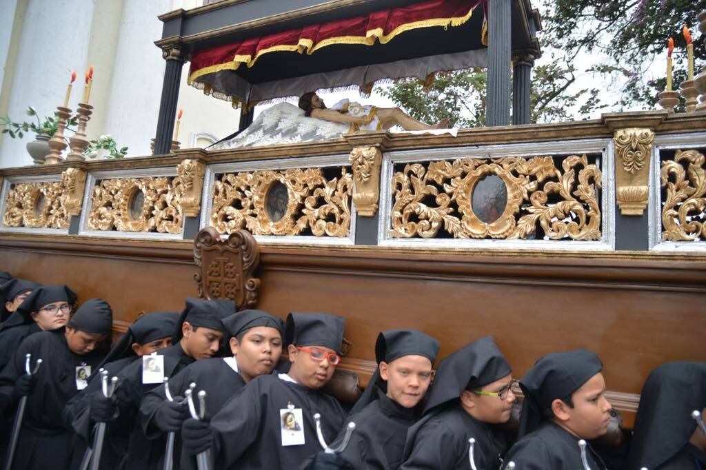 40 niños y adolescentes a partir de 1.20 metros llevan en brazos al Señor Sepultado.