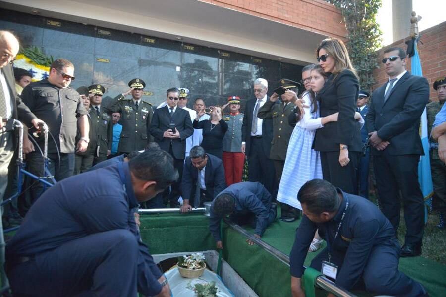 Varios oficiales del Ejército de Guatemala se hicieron presentes para las honras fúnebres del general retirado y le rindieron honores con un discurso frente a su ataúd, antes de ser sepultado.