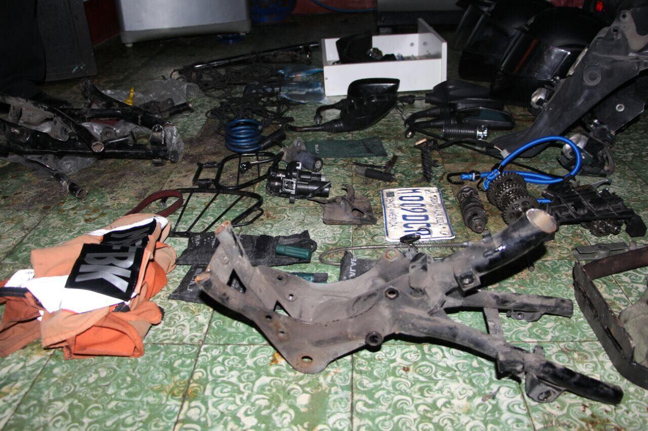 Según investigaciones preliminares, este inmueble funcionaba como guarida para desmantelar las motocicletas que eran robadas o hurtadas, posterior a ello las partes eran vendidas como repuestos.
