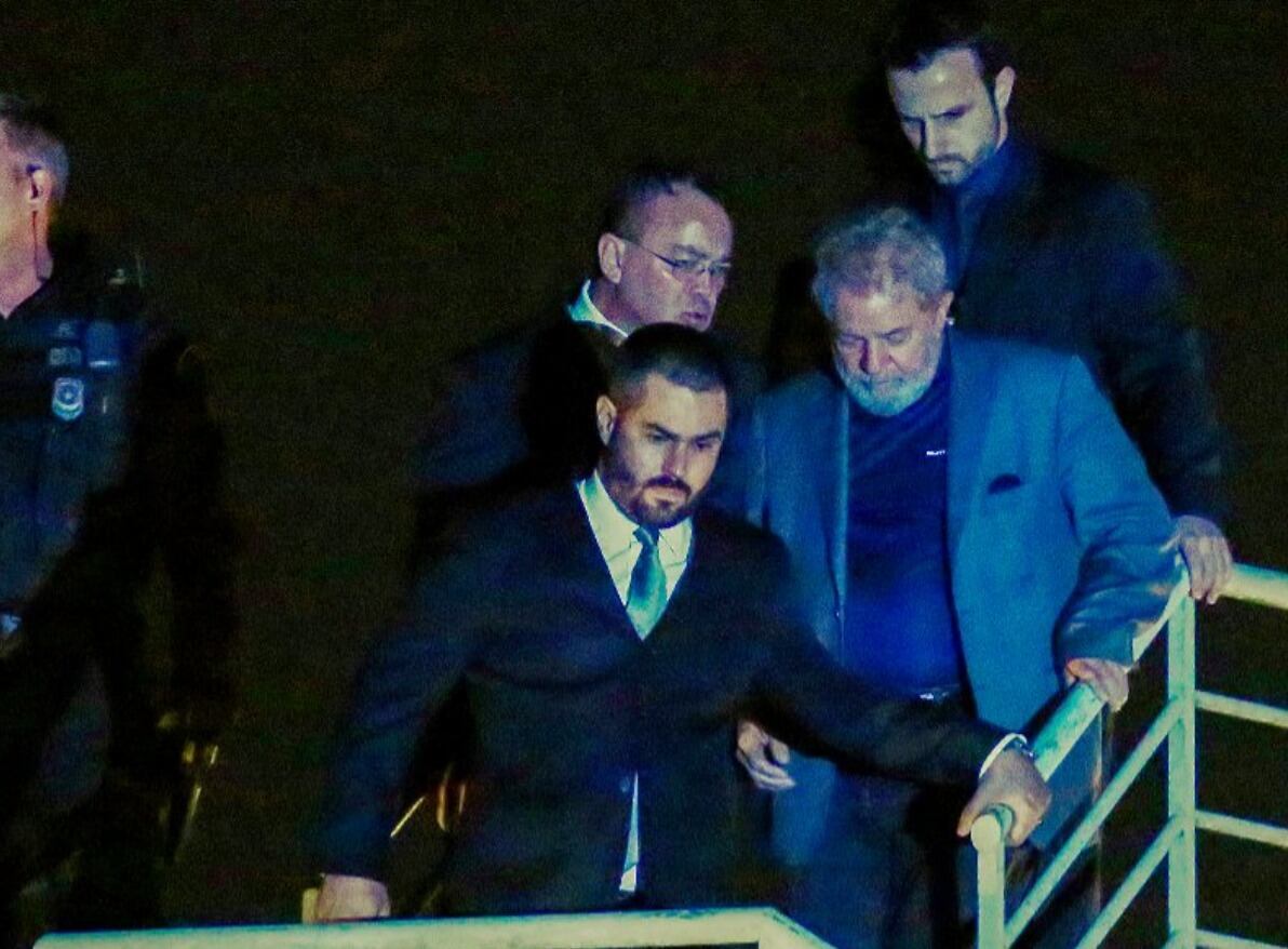 El exmandatario de izquierda (2003-2010) llegó a bordo de un helicóptero, que se posó a las 22:30 horas sobre la sede del edificio. Había sido detenido por la tarde en las afueras de Sao Paulo, desde donde fue trasladado a Curitiba en avioneta.