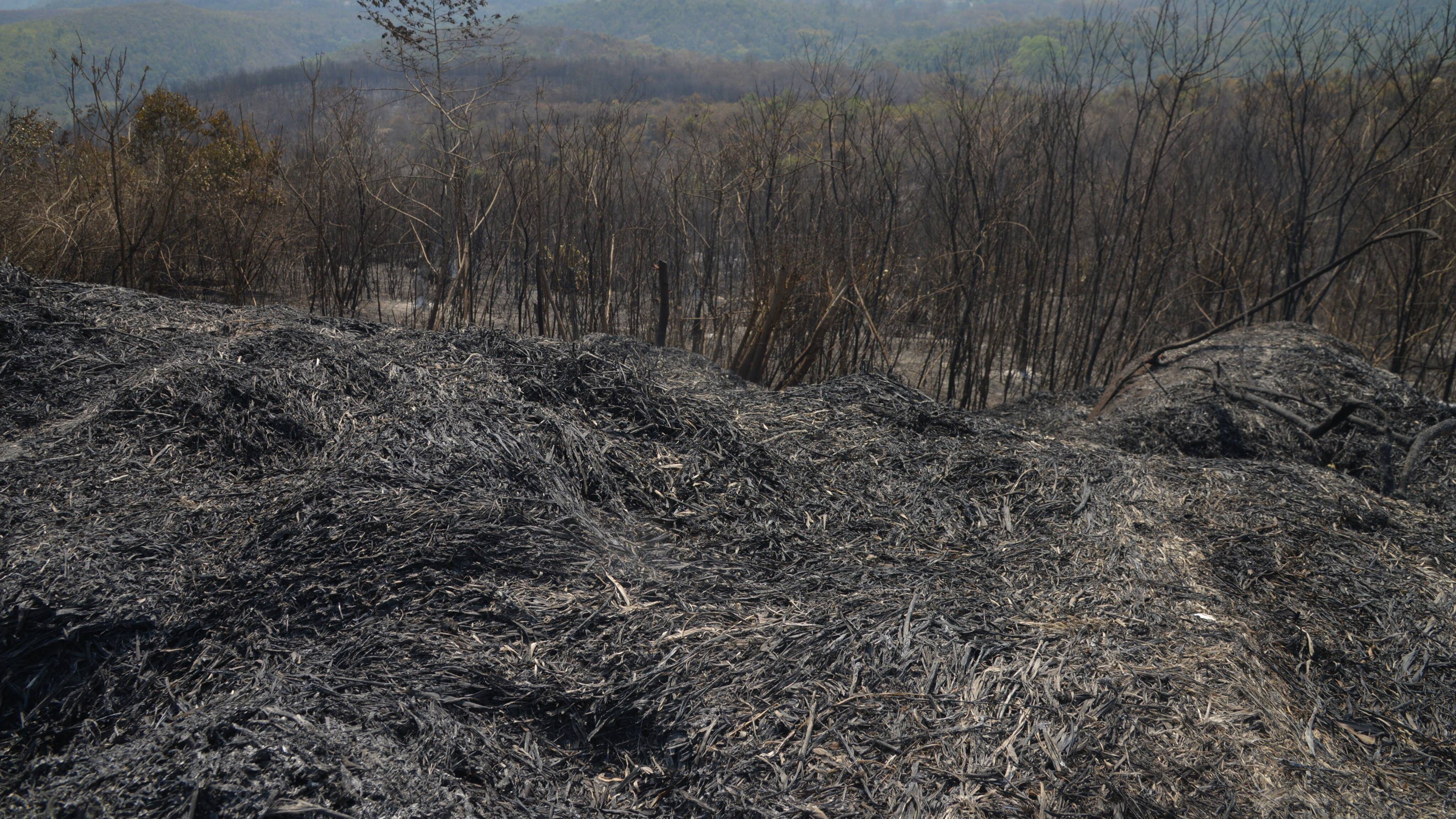 Un total de 60 hectáreas resultaron afectadas por las llamas en tres montañas de esa finca denominada El Naranjo.