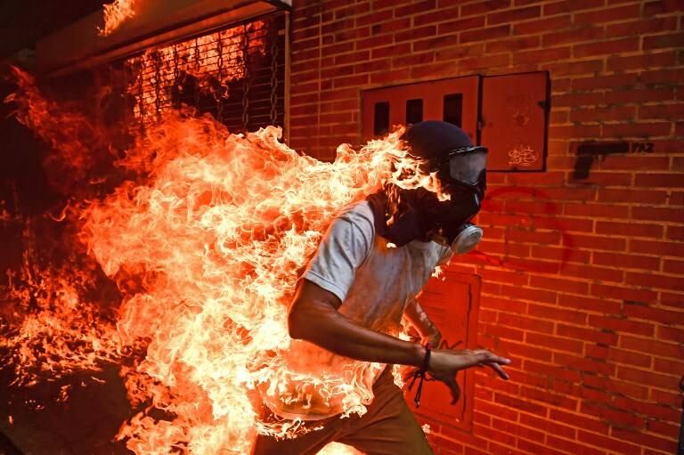 Premiada como la Mejor Foto del Año del prestigioso certamen World Press Photo (WPP) este jueves en Amsterdam, la fotografía captó el momento en el que Víctor Salazar, un estudiante de bioanálisis de 28 años, ardía como una antorcha.