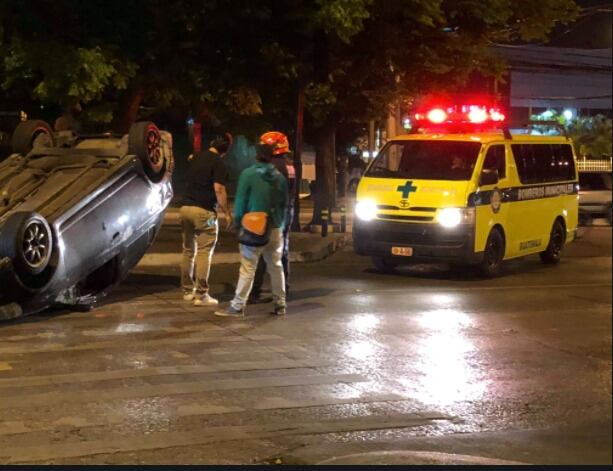 En horas de la noche, un carro volcó en la transitada avenida. Los cuerpo de socorro acudieron al lugar para brindar auxilio al piloto del automóvil.