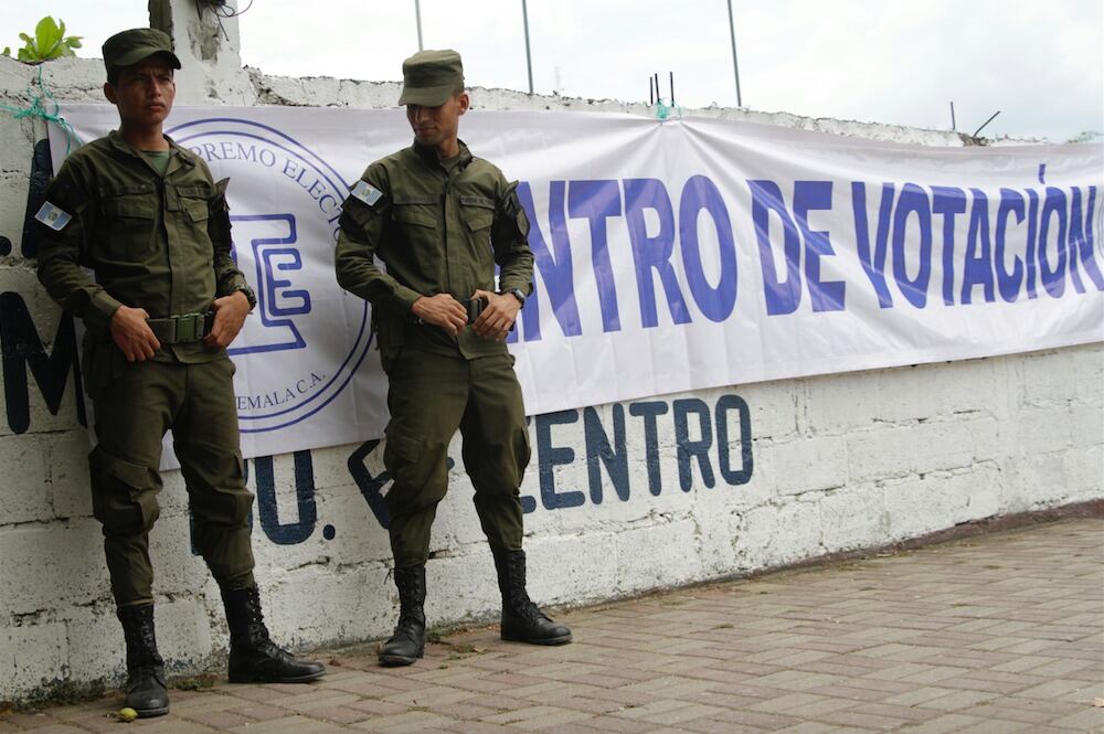 En las afueras de los centros de votación se observan elementos de la fuerza de seguridad, incluyendo al Ejército de Guatemala, como medida de prevención ante cualquier incidente.