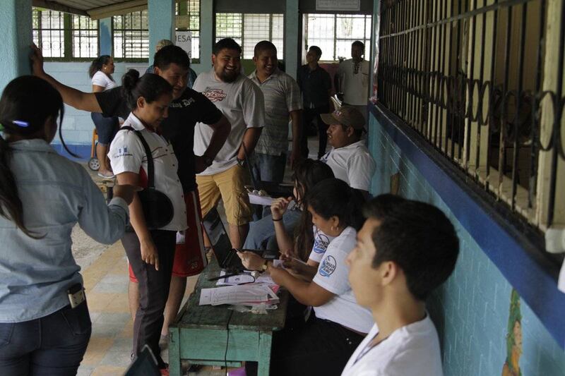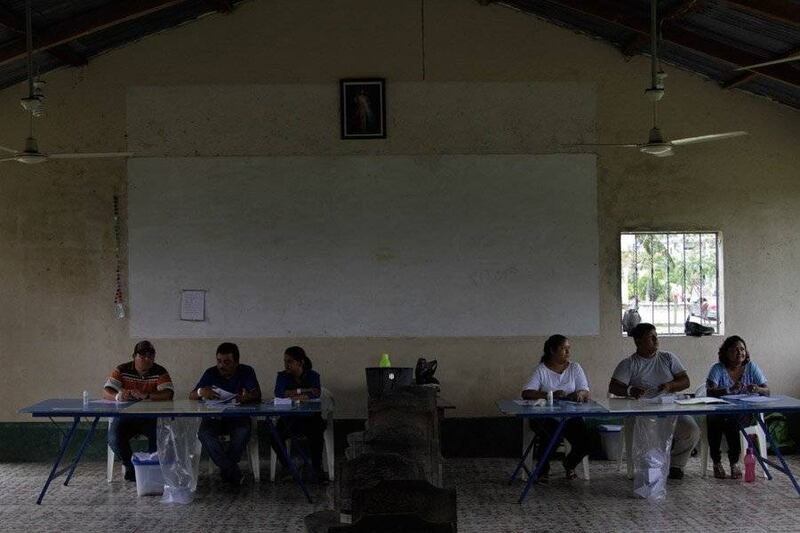Yamileth se seca el sudor. Aunque fue un domingo nublado y con lluvia en algunas partes entre Flores y Melchos de Mencos, la temperatura alta no dio tregua. El ambiente húmedo recordaba que la consulta popular se desarrollaba a menos de pocos kilómetros de la selva que aún protege los vestigios de la civilización maya.