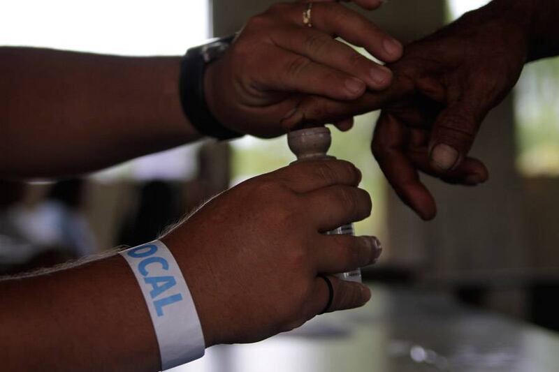 Manuel muestra su índice manchado y confía en que su voto sirva para avanzar en la salida pacífica al conflicto.