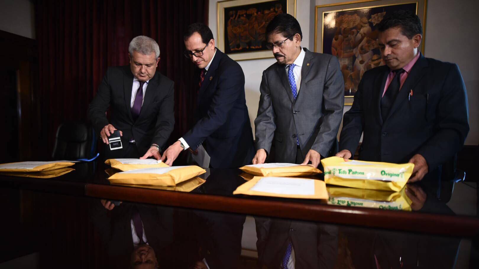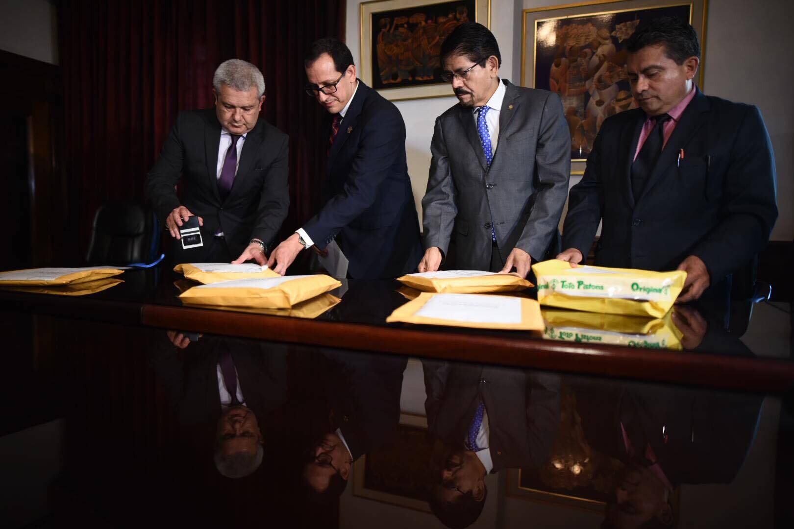 El secretario de la comisión de postulación para la elección de fiscal general y jefe del Ministerio Público (MP), Luis Ruano, acudió a la Secretaría de la Presidencia para entregar la lista de los seis aspirantes a dicho puesto. Se hizo acompañar de los decanos Gustavo Bonilla y Mario García, de la Universidad de San Carlos (USAC) y Universidad Rural, respectivamente.