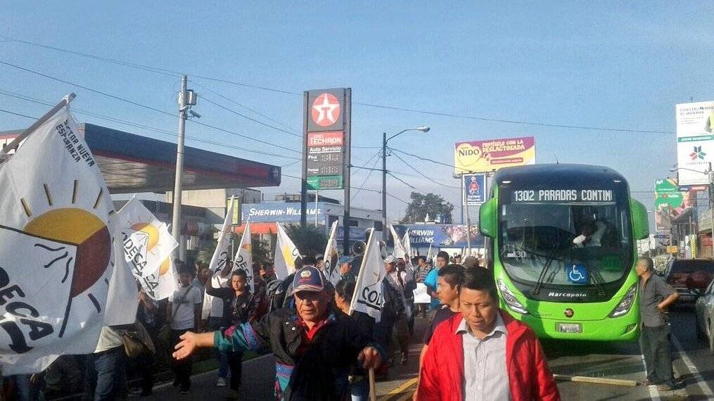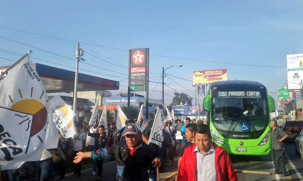 Desde las 7:00 horas, los integrantes de Codeca salieron desde cuatro puntos de la Ciudad de Guatemala con dirección al Congreso y a la Plaza de la Constitución.