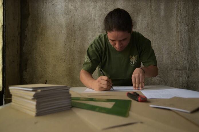 El levantado de texto a mano toma una semana, pero, según el volumen, pueden ser hasta dos. Luego, el manuscrito original lo reproduzco y después viene el proceso de la elaboración física del libro, que para un tiraje de cien llevará otras dos semanas.