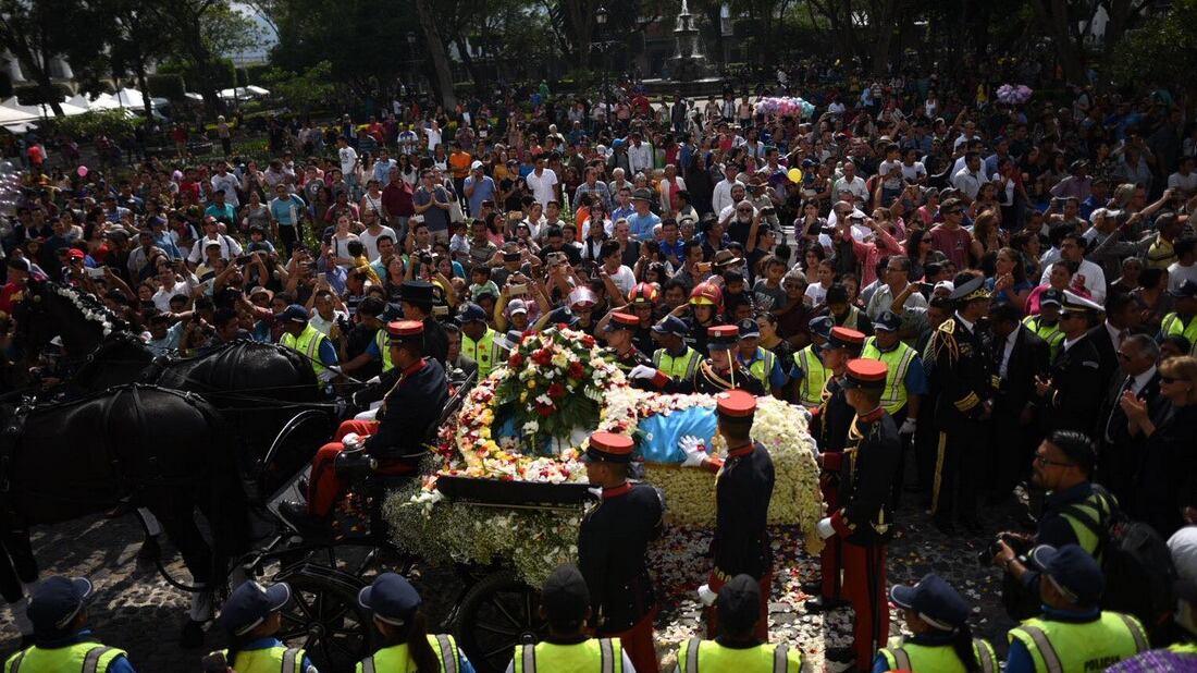 Decenas de personas acompañaron el féretro del expresidente Arzú desde su traslado del Palacio Nacional de Cultura hacia la Municipalidad de Guatemala para darle el último adiós.