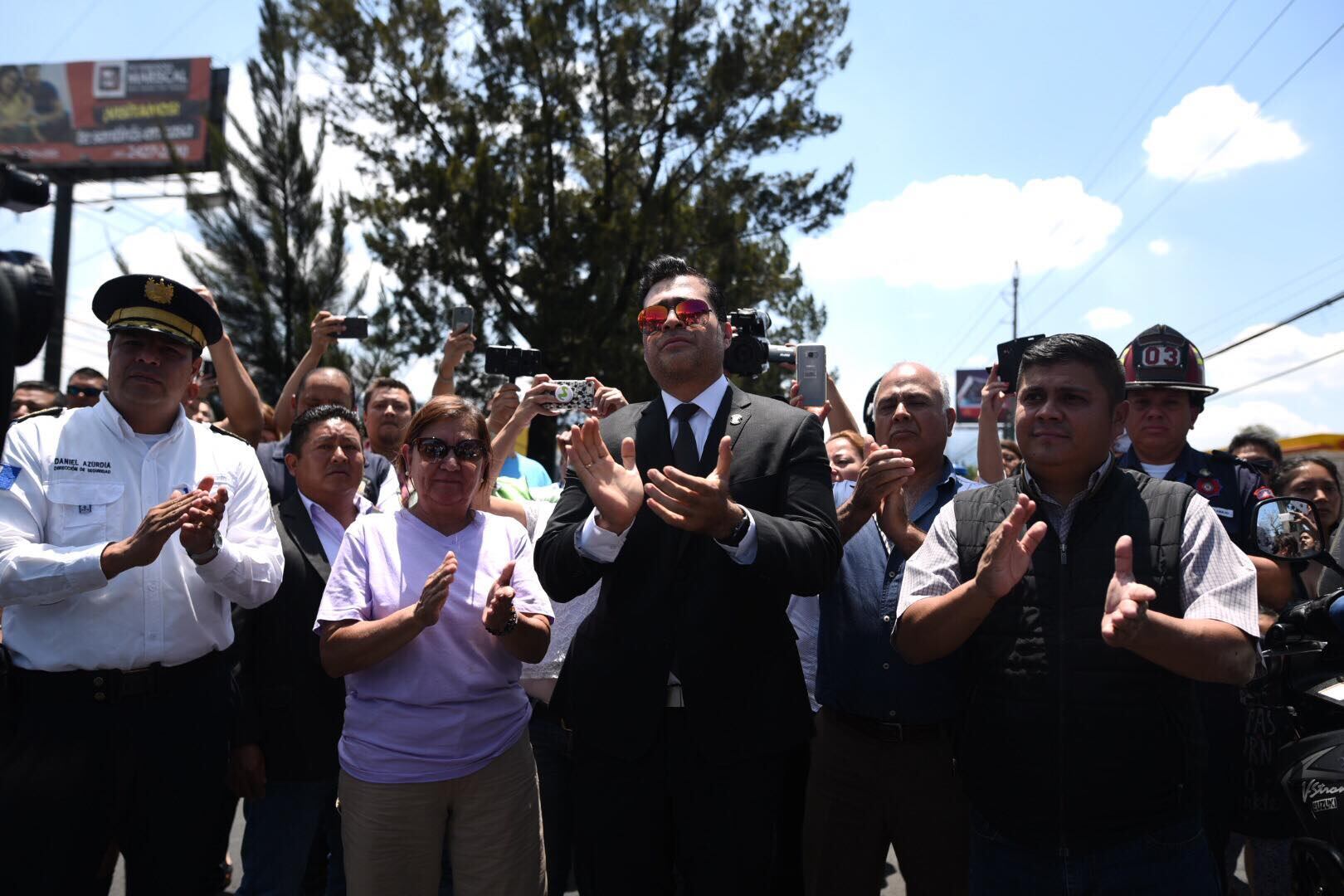 Bran, así como lo hicieron cientos de guatemaltecos, se detuvo en la calzada Roosevelt y acompañado de algunos elementos de la Policía Municipal de Tránsito (PMT) de Mixco y de otras personas, aplaudieron tras el paso del carro de la funeraria.