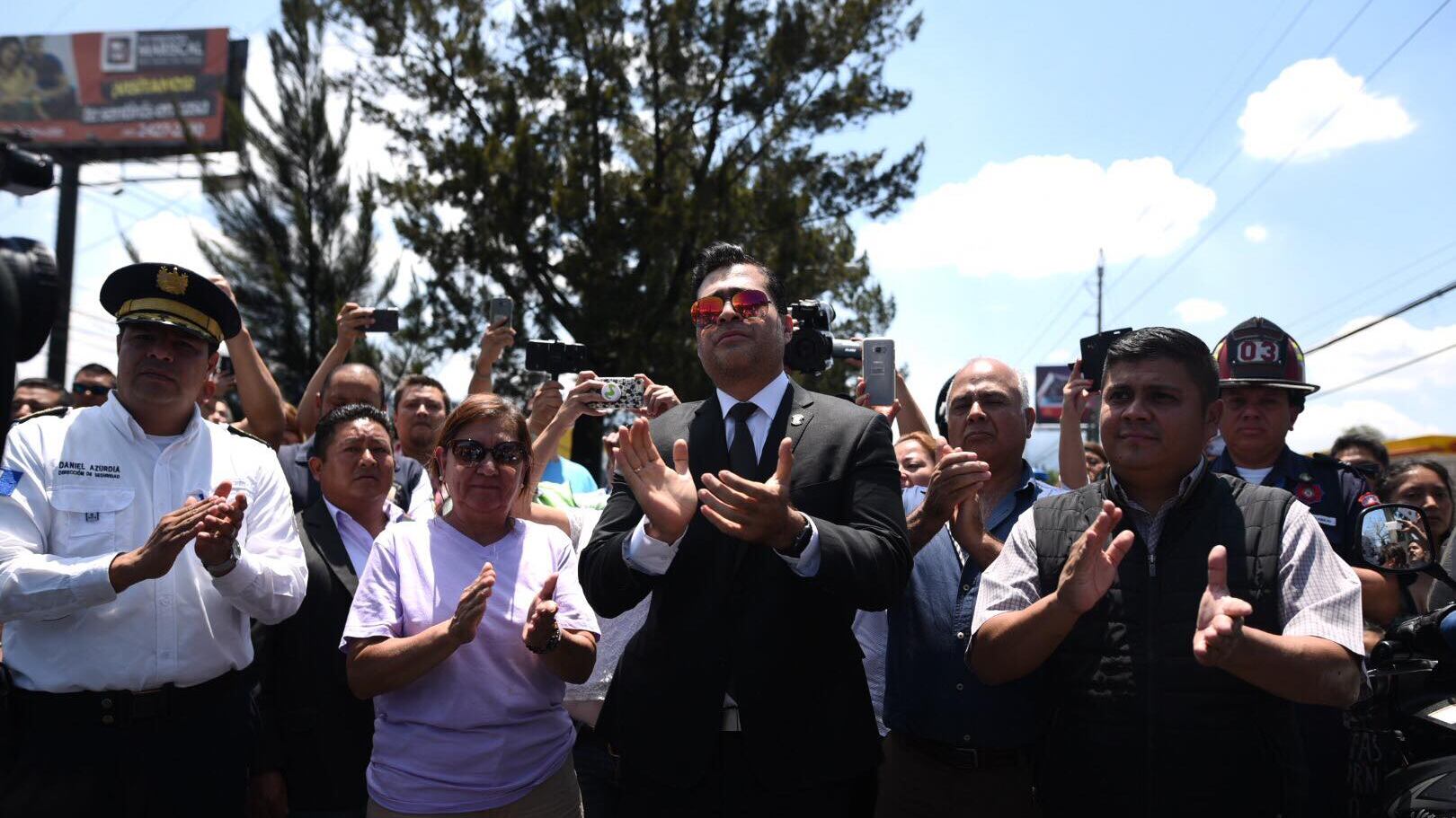 El alcalde de Mixco, Neto Bran, también se sumó a los cientos de personas que salieron al paso de la carroza fúnebre que transportaba los restos mortales del alcalde capitalino y expresidente Álvaro Arzú.