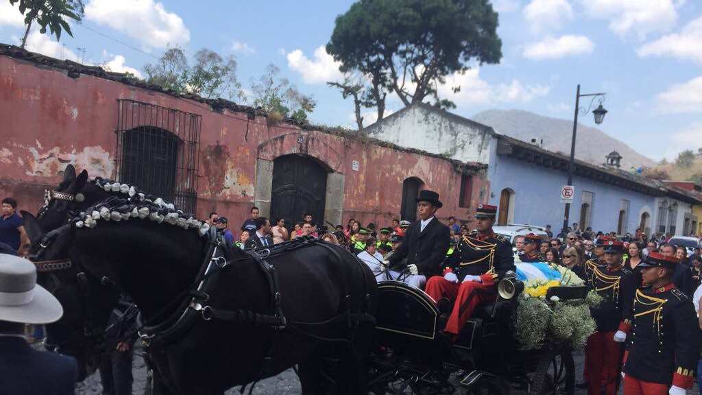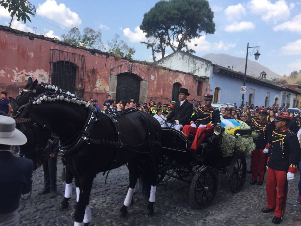 La carroza fúnebre salió desde la comuna capitalina con destino a La Antigua Guatemala, en donde serían enterrados sus restos en una ceremonia muy íntima y privada con lugar únicamente para su familia y allegados.