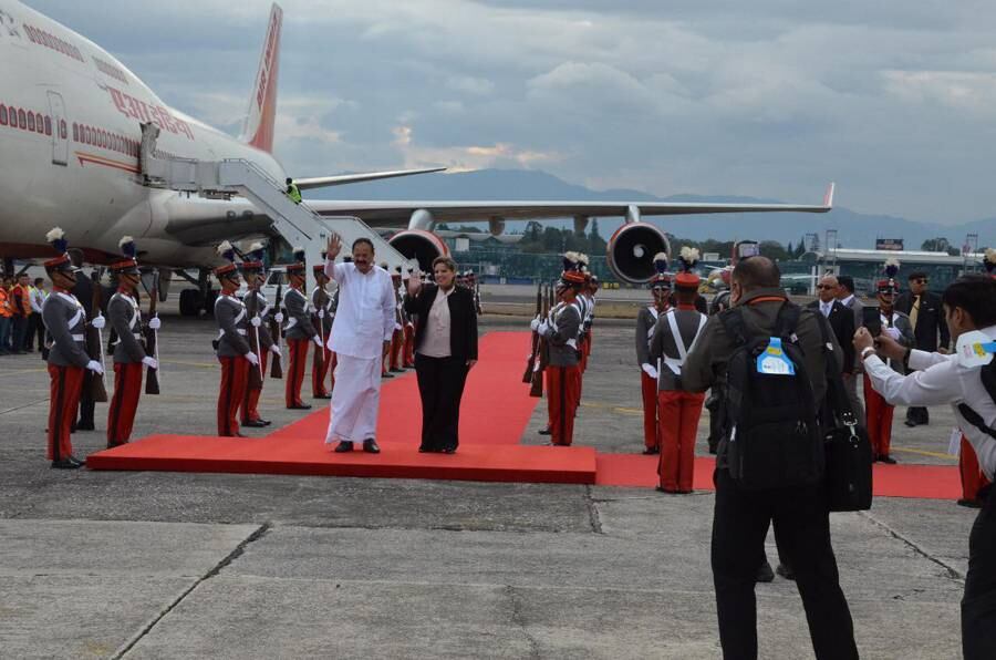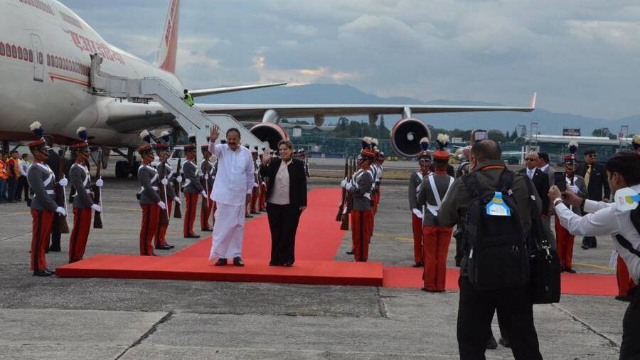 Muppavarapu Venkaiah Naidu, vicepresidente de la India, arribó la tarde del domingo 6 de mayo al Aeropuerto Internacional La Aurora para realizar una visita oficial de tres días, acompañado de una delegación de alto nivel.
