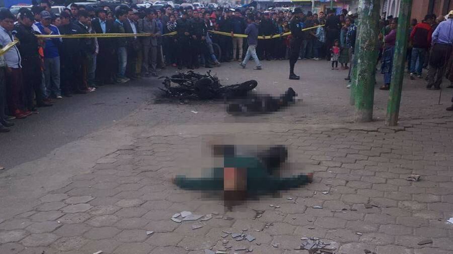 "En el lugar quedaron los cadáveres de los presuntos asaltantes quienes fueron linchados por pobladores y la motocicleta en la que se conducían también fue quemada", agregó.