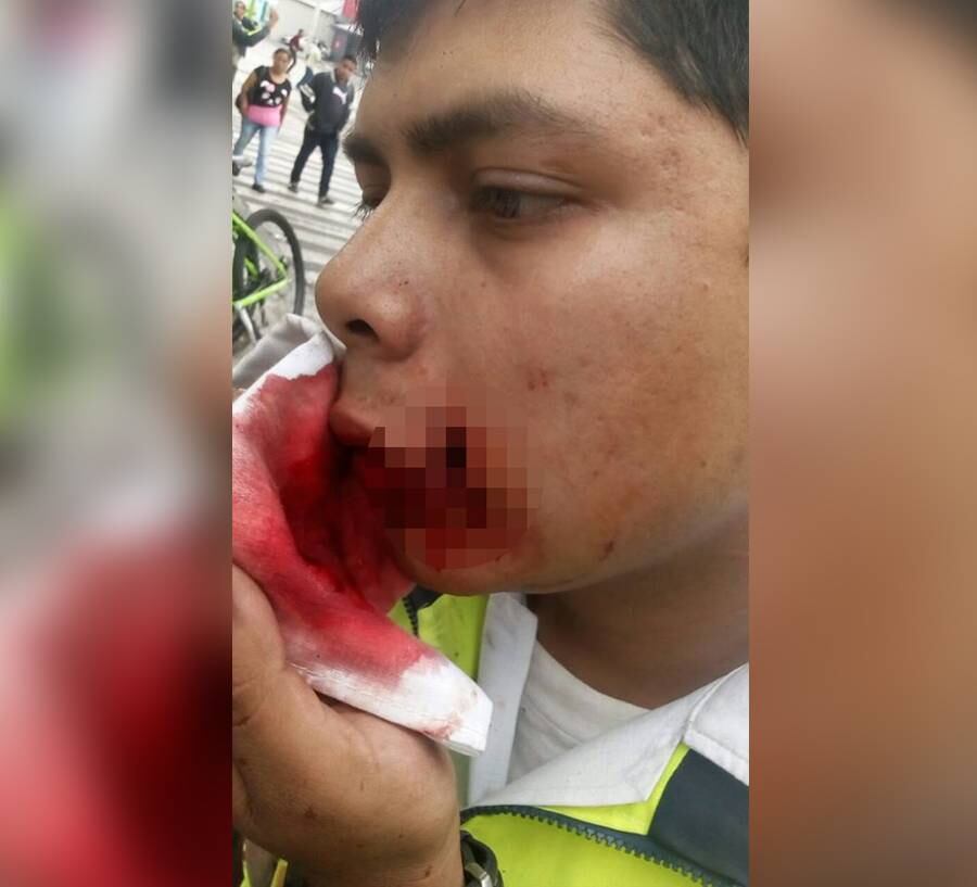 Se trata del agente Daniel Bosh, quien fue agredido mientras atendía a varios vecinos que se quejaban de personas que exigían dinero a cambio de limpiar vidrios en la 12 calle y 7a. avenida de la zona en mención.