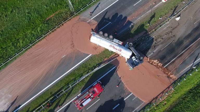 No obstante, autoridades polacas informaron que el derrame de chocolate cubrió seis carriles de la autopista A2, en Graboszewo, entre Września y Słupca, bloqueando el tránsito en ambas direcciones.