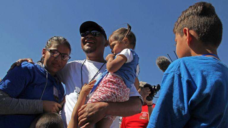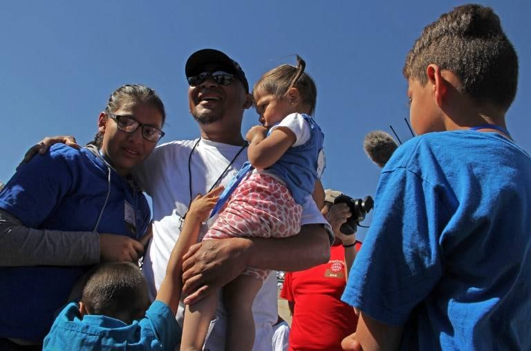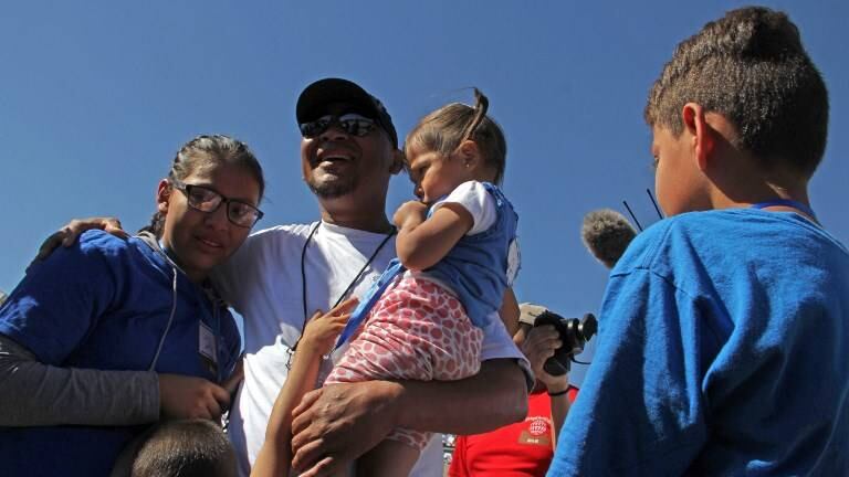 En la línea fronteriza, sobre un afluente seco en el desierto del curso de agua que Estados Unidos llama "Río Grande" y México "Río Bravo", la familia de Iván Castañeda volvió a estar junta por primera vez desde que, hace un mes, sufriera el trauma de la separación.
