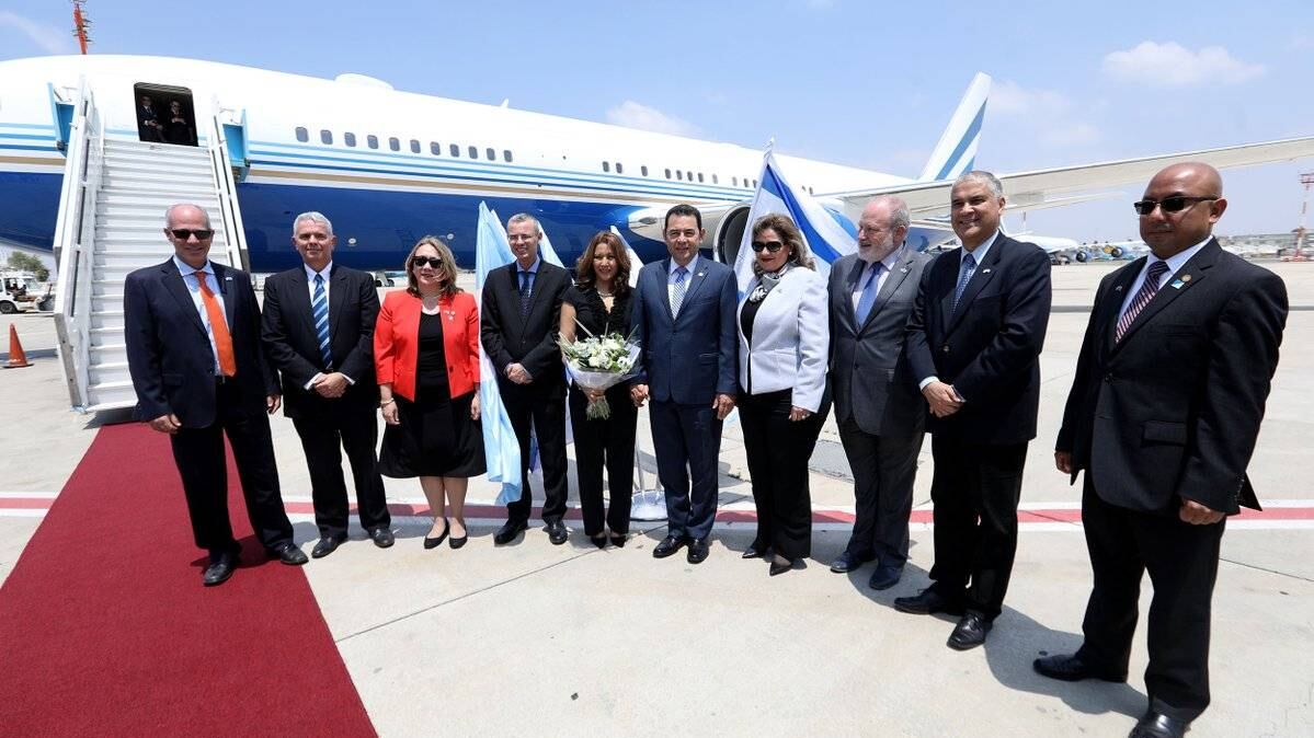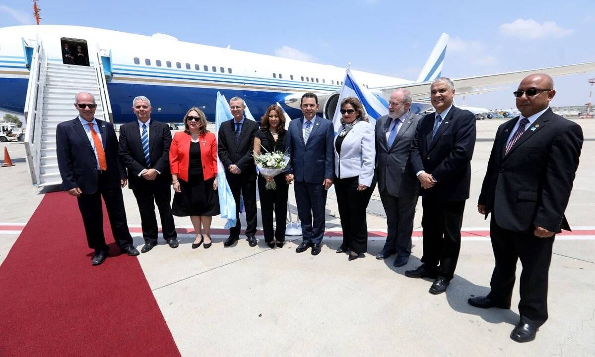 Morales descendió de la aeronave junto a su esposa Patricia Marroquín. Ambos fueron recibidos por los cancilleres de Guatemala, Sandra Jovel (quien arribó a Israel el fin de semana); y de Israel Misrad HaHutz, así como por la embajadora de Guatemala, Sara Solís; y su homólogo, Mattanya Cohen.