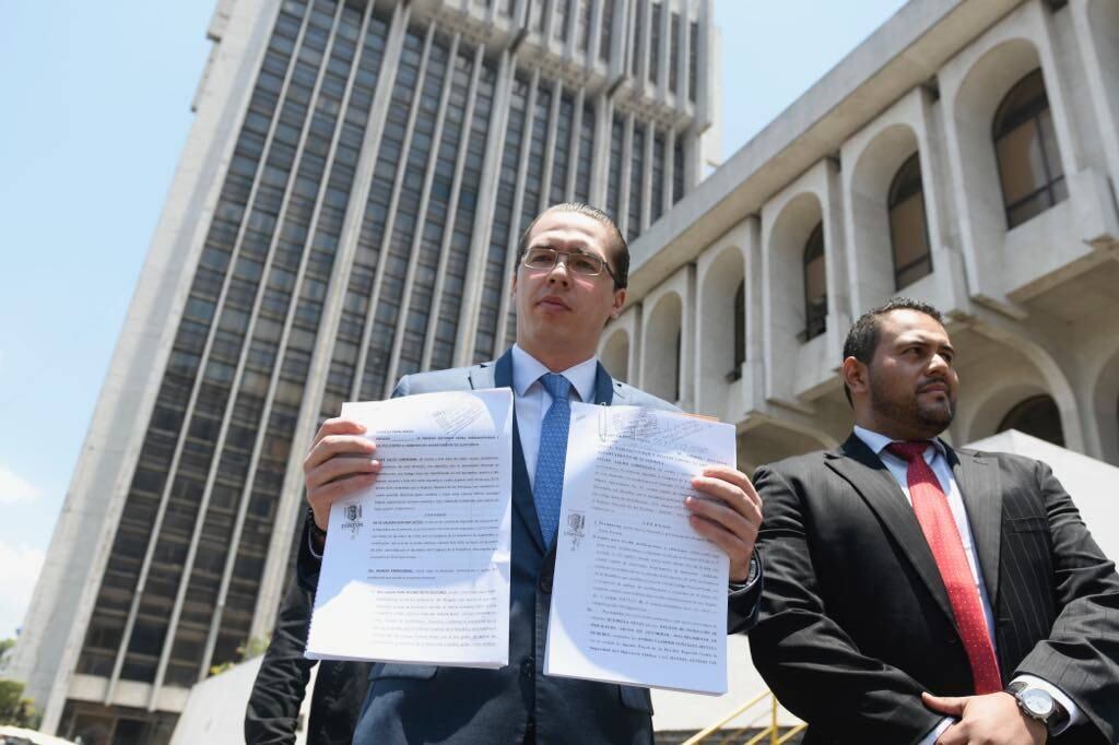 El diputado Felipe Alejos presentó este miércoles en Gestión Penal de la Torre de Tribunales las querellas en contra de tres personas a quienes señala de “violar” sus derechos humanos y constitucionales.